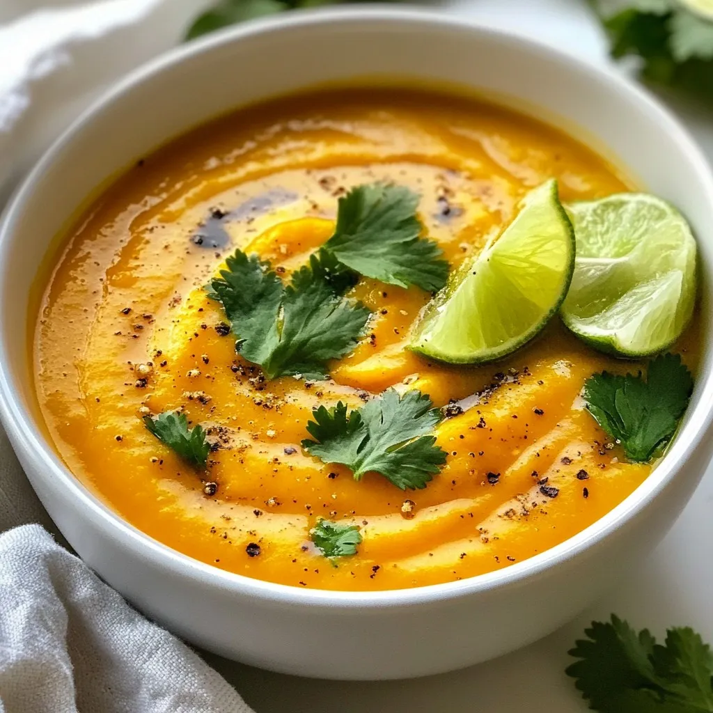 A creamy and flavorful soup made with sweet potatoes, coconut milk, and spices, perfect for a comforting meal.