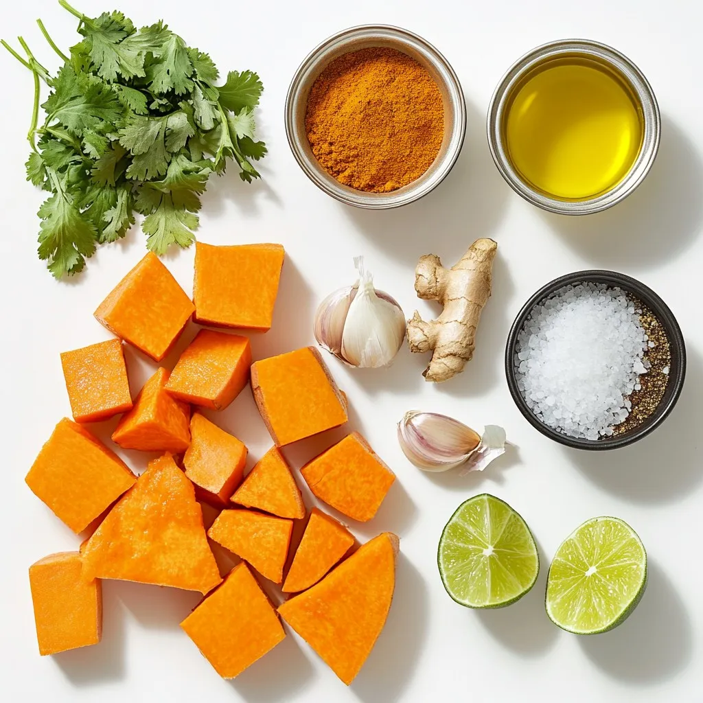 To make this soup, you start with sweet potatoes. They give the dish its natural sweetness. The aromatics are next. Onion, garlic, and ginger add depth and warmth. Coconut milk and vegetable broth create a creamy base.