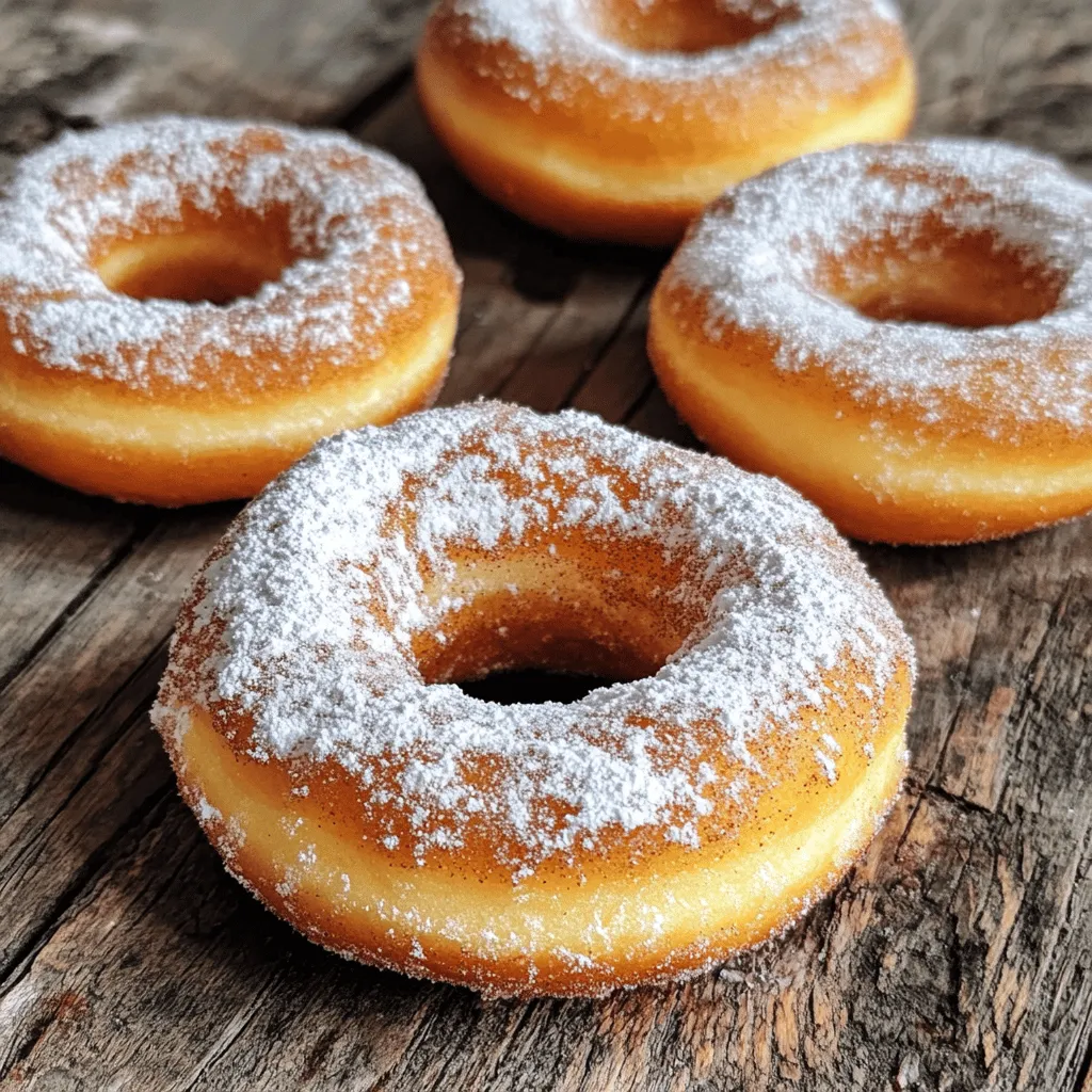 To finish, you will dust the warm donuts with powdered sugar. This step adds a nice touch and extra sweetness. With these ingredients, you can create delightful donuts that everyone will love!