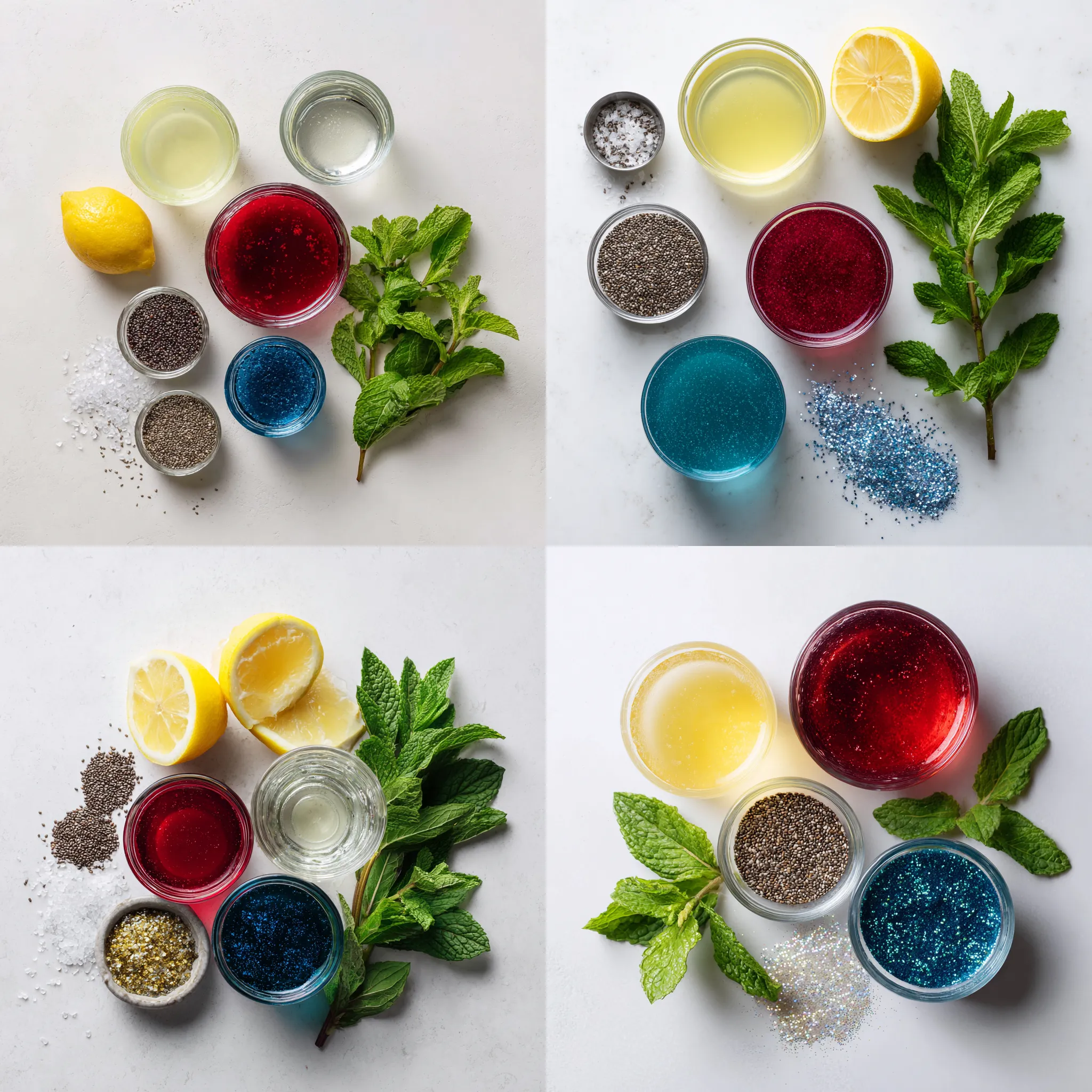 These ingredients create a fun drink. The lemonade adds sweetness. Sparkling water gives a nice fizz. Chia seeds add a unique texture. Pomegranate juice brings a tart taste. Blue raspberry syrup adds a sweet touch.