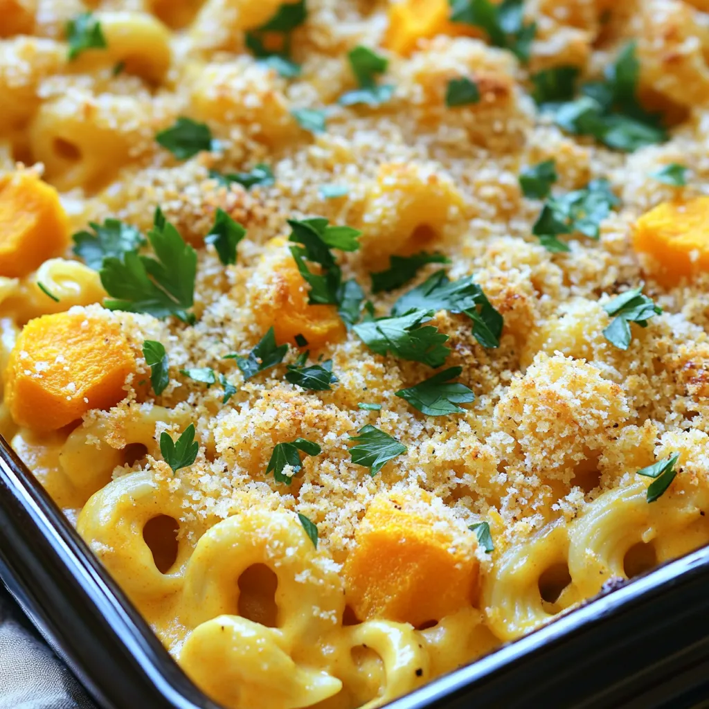 These ingredients create a creamy, cozy dish that blends classic mac and cheese with the sweet taste of butternut squash. The elbow macaroni provides a classic base, while the butternut squash adds a unique twist. With a mix of garlic, onion, and smoked paprika, the flavors deepen. The sharp cheddar and mozzarella cheeses melt together, making the dish rich and creamy. The breadcrumbs on top give a crunchy finish, creating a delightful contrast. You can add fresh parsley on top for a fresh look and taste. Each element plays an important role in making this dish a flavorful delight.