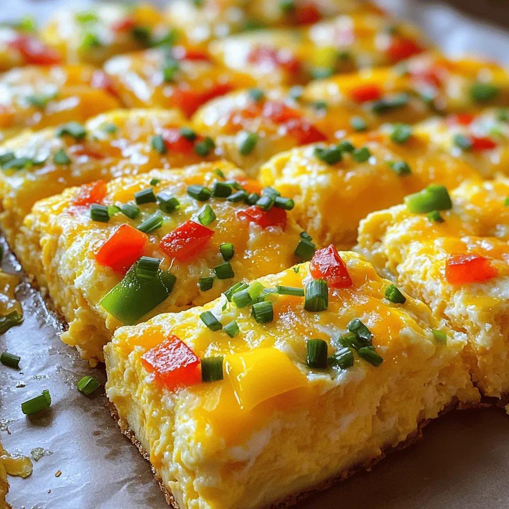 When serving, cut the Cheesy Egg Bake into squares. Use a colorful plate to make it pop. You can add a sprinkle of extra green onions or cheese on top. This makes your dish look fresh and inviting.