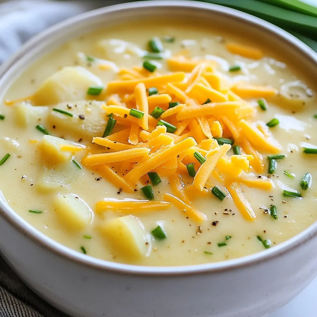 A creamy and flavorful potato soup infused with cheddar cheese, garlic, and herbs.