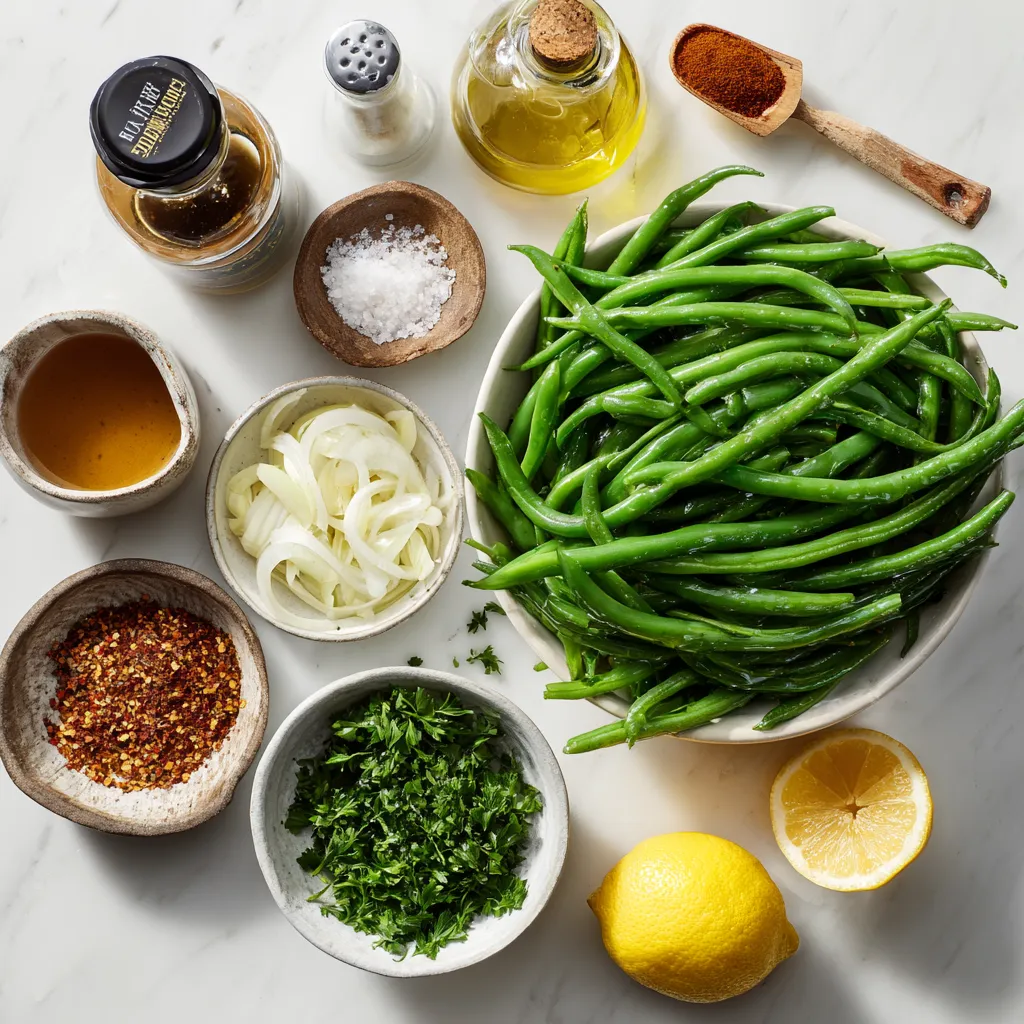 Onions and garlic are essential for great flavor. Sautéing them in olive oil creates a fragrant base. Lemon juice brightens the dish and fresh parsley adds color. These ingredients come together to make the green beans shine.