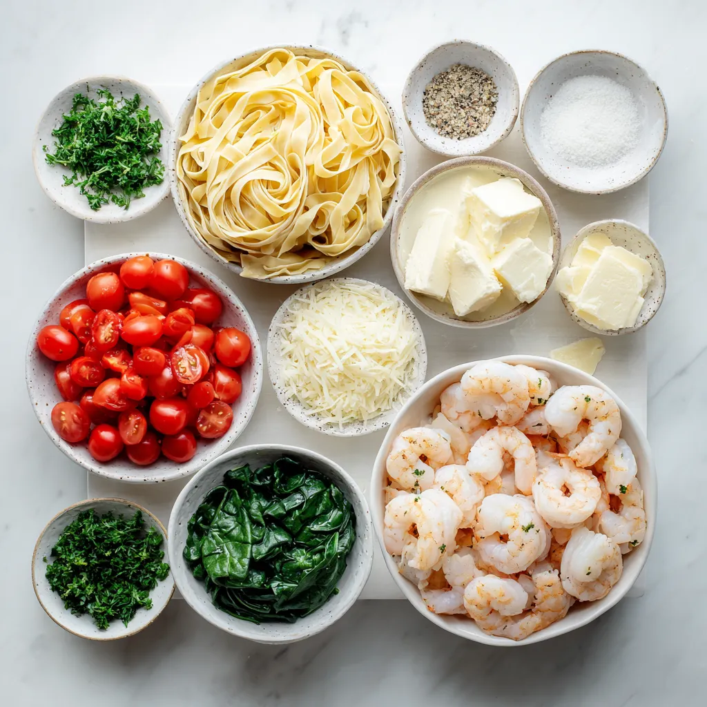 A delicious and creamy pasta dish featuring shrimp, garlic, and spinach.