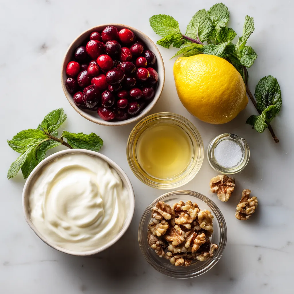 This creamy Greek yogurt cranberry dip is both simple and delicious. First, gather all your ingredients. The base of this dip is one cup of plain Greek yogurt. It gives a smooth and rich texture.