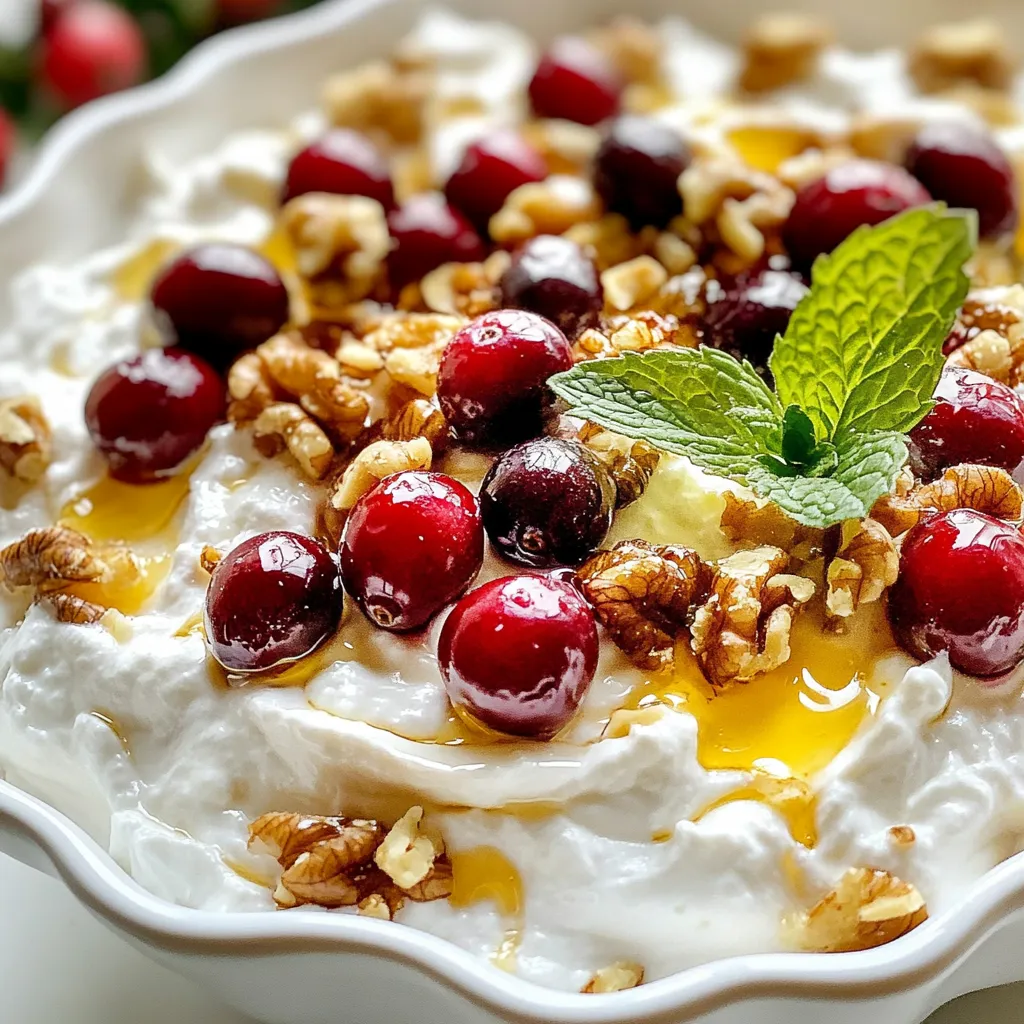 A delicious and creamy dip made with Greek yogurt, cranberries, and walnuts, perfect for serving with fresh fruit or crackers.