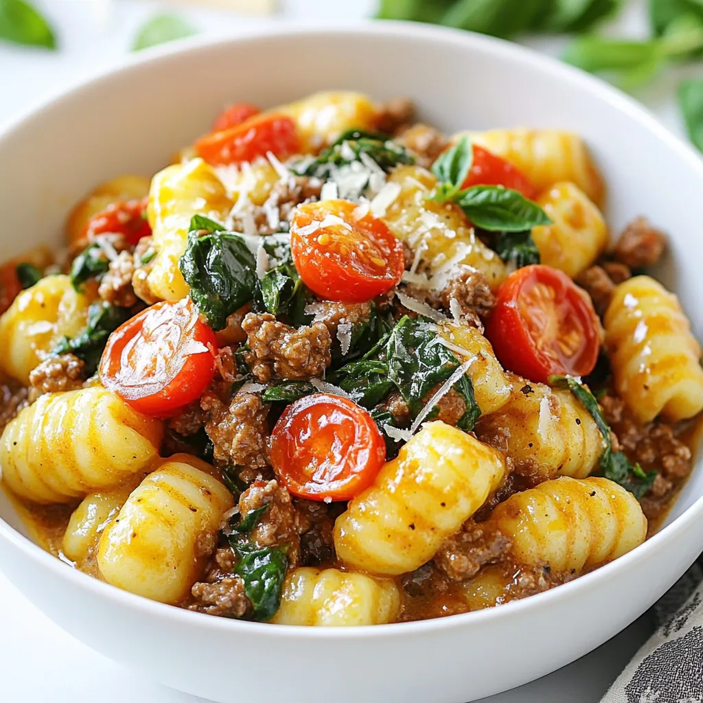 A delicious and creamy dish featuring ground beef and gnocchi, perfect for a hearty meal.