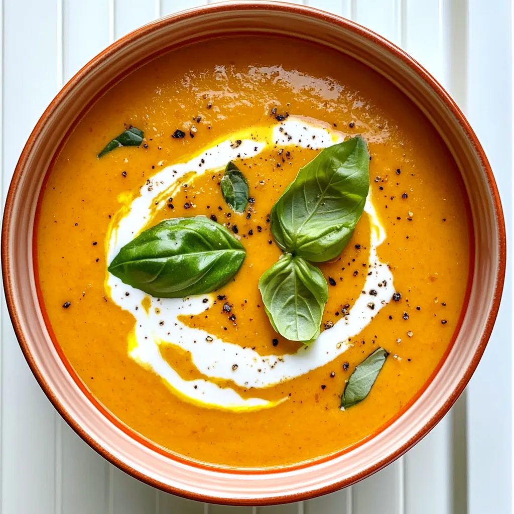 Serve in warm bowls and drizzle a swirl of heavy cream on top. Garnish with fresh basil leaves for an extra pop of color and flavor. Consider pairing with grilled cheese sandwiches for a comforting meal!
