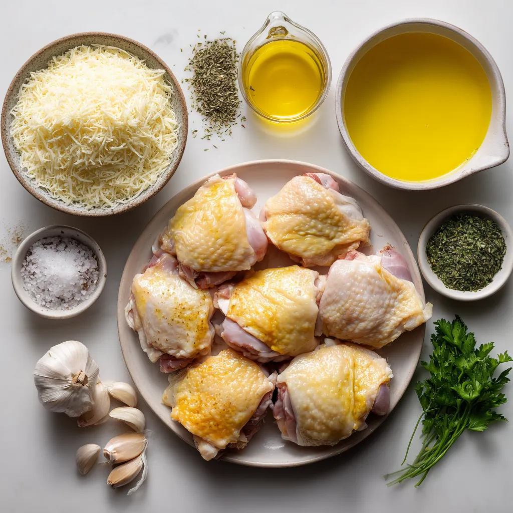 To make Crockpot Garlic Parmesan Chicken Thighs, you need fresh and high-quality ingredients. The star of this dish is the chicken thighs, which should be bone-in and skin-on. This choice adds rich flavor and keeps the meat moist.