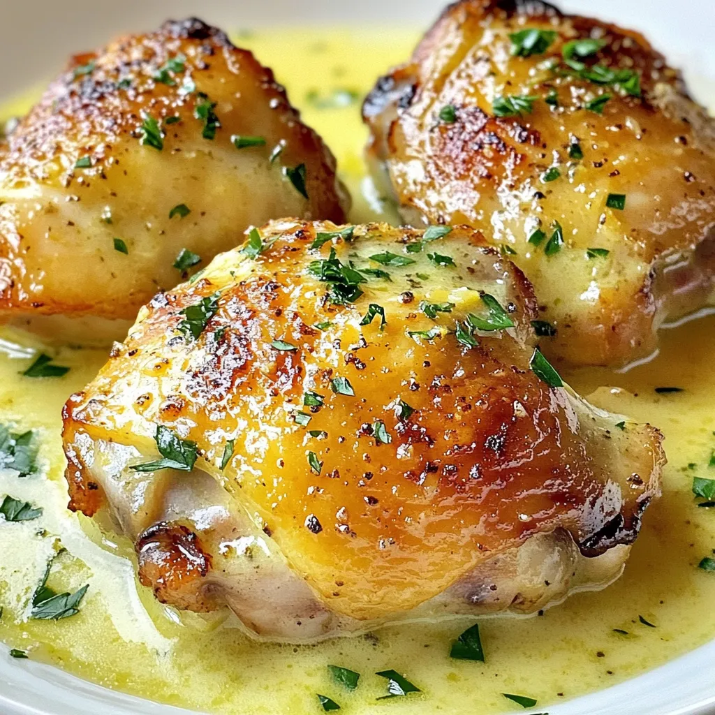 - 6 chicken thighs (bone-in, skin-on for extra flavor) - 4 cloves garlic, minced - 1 cup grated Parmesan cheese - 1/2 cup chicken broth - 1/4 cup heavy cream - 1 tablespoon olive oil - 1 teaspoon dried Italian herbs (oregano, thyme, basil) - Salt and pepper to taste - Fresh parsley, chopped (for garnish) To make Crockpot Garlic Parmesan Chicken Thighs, you need fresh and high-quality ingredients. The star of this dish is the chicken thighs, which should be bone-in and skin-on. This choice adds rich flavor and keeps the meat moist. Using garlic brings a wonderful aroma and taste. You can use fresh garlic for the best flavor. Grated Parmesan cheese adds creaminess and a salty touch. The chicken broth and heavy cream create a luscious sauce that soaks into the meat. Don't forget the dried Italian herbs. They give a great taste profile to the dish. Season the chicken with salt and pepper to enhance all these flavors. Finally, fresh parsley adds a pop of color and freshness when you serve the dish. Gather all these ingredients before you start cooking. This way, you'll be ready to create a delightful meal! {{ingredient_image_1}} First, season the chicken thighs with salt and pepper. This helps bring out the flavor. Using skin-on chicken is key. The skin adds rich flavor and makes the meat juicy. Next, heat olive oil in a skillet over medium heat. Add the minced garlic and sauté for 1-2 minutes. Stir it carefully to avoid burning. You want it fragrant, not brown. This step adds depth to the dish. Now, layer the chicken thighs in the crockpot. Pour the sautéed garlic over the chicken. This ensures every piece gets that garlic goodness. In a separate bowl, mix chicken broth, heavy cream, and dried herbs. Pour this mix over the chicken. Cover the crockpot and set it to cook. You can choose low for 5-6 hours or high for 3-4 hours. The chicken is done when it is tender and fully cooked. Use a meat thermometer to check. Aim for 165°F (75°C) for safety. When done, carefully lift the chicken from the crockpot. Drizzle the sauce over the chicken thighs. Garnish with chopped parsley for a fresh touch. This adds color and flavor to your dish. Enjoy your delicious meal! To add more flavor to your dish, try these simple tips: - Use smoked paprika for a smoky taste. - Add a pinch of red pepper flakes for heat. - Try fresh herbs like rosemary or thyme. If you want to substitute heavy cream, consider these options: - Use Greek yogurt for creaminess without the fat. - Coconut milk adds a nice twist with a hint of sweetness. - Silken tofu blended until smooth can work well, too. For crispy skin on your chicken, follow these best practices: - Sear the chicken in a hot pan before placing it in the crockpot. - Keep the skin side up in the crockpot to allow it to crisp. Resting the chicken is also key. Let it sit for a few minutes before serving. This helps the juices settle, keeping the meat moist and tender. When choosing chicken thighs, consider bone-in versus boneless: - Bone-in thighs add more flavor and moisture. - Boneless are quicker to cook and easier to serve. If you have a different crockpot model, adjust cooking times: - For a smaller model, check for doneness 30 minutes early. - A larger model may need extra time. Always use a meat thermometer to ensure the chicken reaches 165°F. Pro Tips Use Bone-in, Skin-on Thighs: These cuts provide more flavor and moisture, resulting in a richer dish. Don’t Skip Sautéing Garlic: Sautéing garlic before adding it to the crockpot helps to release its essential oils, enhancing the overall flavor of the dish. Adjust Seasonings to Taste: Feel free to add more herbs or spices based on your preference, ensuring the dish is perfectly tailored to your palate. Garnish for Freshness: Fresh parsley not only adds color but also a burst of freshness that complements the rich flavors of the chicken. {{image_2}} You can switch up the cheese in this dish. Try using mozzarella or cheddar. These cheeses melt well and add a nice taste. For more nutrition, add vegetables like spinach or bell peppers. They will cook down and blend right in with the chicken. If you need to make this dish gluten-free, use gluten-free chicken broth. This keeps it safe for those with allergies. For dairy-free options, swap the heavy cream with coconut cream. This gives a creamy texture without dairy. Pair your chicken thighs with sides like steamed broccoli or a fresh salad. These options add color and crunch. You can also serve the chicken over pasta or rice. The sauce from the crockpot will soak into the pasta or rice for extra flavor. To keep your Crockpot Garlic Parmesan Chicken Thighs fresh, follow these tips: - Let the chicken cool to room temperature. - Place it in an airtight container. - Store it in the refrigerator. You can safely store leftovers for up to 3 days. If you want to keep it longer, consider freezing it. To reheat chicken thighs, you have a few good methods: - Use the microwave for quick reheating. Place the chicken on a plate and cover it with a damp paper towel to keep it moist. - For oven reheating, preheat to 350°F (175°C). Place the chicken in a baking dish and cover it with foil. Heat for about 20 minutes. Always check the internal temperature. It should reach 165°F (74°C) for safe eating. This helps retain the chicken's tender texture. You can use chicken breasts or drumsticks. Both cuts work well in this recipe. If you choose chicken breasts, they might cook faster. Drumsticks have a nice flavor too. Just keep an eye on the cooking time. Yes, you can cook it on high. Set your crockpot to high for 3 to 4 hours. The chicken will still be tender and juicy. Just remember to check it a little earlier than if you cooked it on low. Check the internal temperature. It should reach 165°F (75°C) for safe eating. Use a meat thermometer for best results. If you don’t have one, make sure the juices run clear when you cut into it. Yes, you can freeze leftovers. Let the chicken