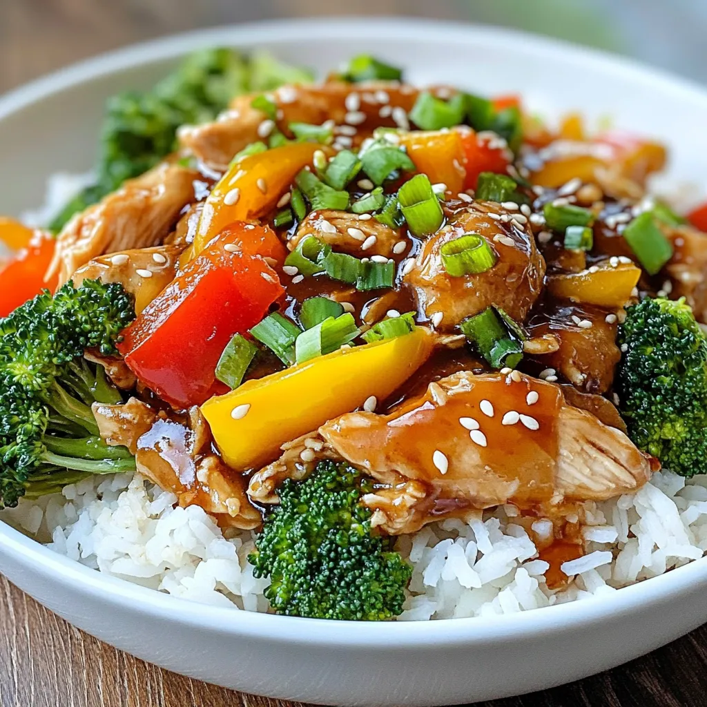 - 1 pound boneless, skinless chicken thighs or breasts - 1 cup teriyaki sauce (store-bought or homemade) - 1 tablespoon fresh ginger, grated - 3 cloves garlic, minced - 1 cup broccoli florets - 1 cup bell peppers, sliced (red, yellow, or both) - 1 tablespoon sesame oil - 2 green onions, chopped (for garnish) - Sesame seeds (for garnish) - Steamed rice or quinoa (for serving) Gather these ingredients for a quick and easy meal. The chicken gives you a great base. The teriyaki sauce adds a sweet and salty flavor. Ginger and garlic bring warmth to the dish. The broccoli and bell peppers add color and crunch. For garnishes, sesame oil adds richness. Green onions give a fresh taste. Sesame seeds are fun and add a bit of crunch. Serve it all over warm rice or quinoa for a complete meal. This mix of ingredients makes the dish simple yet packed with flavor. {{ingredient_image_1}} Start by placing the boneless chicken thighs or breasts in your slow cooker. This is the base of your teriyaki chicken. Make sure to spread them out so they cook evenly. Next, pour the teriyaki sauce over the chicken. This sauce is sweet and savory, coating the chicken well. Then, sprinkle the grated ginger and minced garlic on top for extra flavor. These aromatics bring warmth and depth to the dish. Now, it’s time to mix in the vegetables. Add the broccoli florets and sliced bell peppers around the chicken. This adds color and nutrition to your meal. Make sure the veggies are distributed evenly for the best taste. Then, drizzle the sesame oil on top. This gives a rich flavor that pairs perfectly with the teriyaki sauce. Cover your slow cooker and set it to cook. You can choose low for 4 hours or high for 2 hours. The chicken will become tender and soak up all the tasty sauce. Once the chicken is cooked, use two forks to shred it right in the sauce. It should fall apart easily. Serve the teriyaki chicken and vegetables over a bed of steamed rice or quinoa. For the final touch, top with chopped green onions and a sprinkle of sesame seeds. This adds crunch and freshness to your dish. Enjoy your easy and flavorful meal! To ensure even cooking, spread the chicken in a single layer. This helps all pieces heat up the same way. When using a slow cooker, I recommend cooking on low for 4 hours. If you’re in a rush, use high for 2 hours. Always check that the chicken reaches 165°F before serving. You can make teriyaki sauce at home if you want a fresh taste. Mix soy sauce, brown sugar, ginger, and garlic. For veggies, feel free to swap broccoli and bell peppers. Snap peas, carrots, or zucchini work well too. You can also use chicken breast if you prefer a leaner protein. Want more flavor? Try adding a pinch of red pepper flakes for heat. A splash of rice vinegar can add a nice zing. If you love sesame flavor, toss in some sesame seeds while cooking. You can also drizzle more sesame oil before serving for extra richness. Pro Tips Use Fresh Ingredients: Using fresh ginger and garlic will enhance the flavor of your teriyaki chicken, making it more aromatic and delicious. Customize Your Vegetables: Feel free to mix and match your favorite vegetables such as snap peas, carrots, or zucchini for added color and nutrition. Let it Rest: After shredding the chicken, let it sit in the sauce for a few minutes before serving to absorb more flavor. Meal Prep Friendly: This recipe is perfect for meal prepping. Just double the ingredients and portion them out for easy lunches throughout the week. {{image_2}} To make teriyaki chicken in an Instant Pot, you need to adjust the cooking time. Start by placing the chicken in the pot. Pour the teriyaki sauce over the chicken. Add the ginger and garlic. Mix in the broccoli and bell peppers. Drizzle the sesame oil on top. Set the Instant Pot to cook for 10 minutes on high pressure. Once it is done, let it release pressure naturally for 5 minutes. Then, do a quick release. Shred the chicken and serve it over rice or quinoa. This method cuts down cooking time while keeping the flavors rich. If you want a low-carb meal, swap steamed rice with cauliflower rice. Cauliflower rice is easy to make. Just pulse cauliflower florets in a food processor until they look like rice. Sauté it in a pan for a few minutes until tender. Then, serve the teriyaki chicken on top. This option is healthy and still very tasty. For a gluten-free version, look for gluten-free teriyaki sauce. Many brands offer gluten-free options. You can also make your own sauce. Mix soy sauce, honey, ginger, and garlic. This way, you control the ingredients. Serve the chicken with gluten-free rice or quinoa. Enjoy the flavors without worrying about gluten. To keep your teriyaki chicken fresh, follow these steps: - Cool it first: Let the chicken cool at room temperature for about 30 minutes. - Use airtight containers: Store the chicken in airtight containers. This prevents moisture loss. - Refrigerate: Place the containers in the fridge. It helps keep the chicken safe to eat. When you want to enjoy your leftovers, here’s how to reheat: - Microwave: Place the chicken in a microwave-safe dish. Cover it with a damp paper towel. Heat for 1-2 minutes. Stir halfway for even warmth. - Stovetop: Heat in a pan over low heat. Add a splash of water or sauce to keep it moist. Stir often to prevent sticking. The teriyaki chicken stays fresh for: - In the fridge: About 3-4 days. - In the freezer: Up to 3 months. Label your containers with the date. This helps you keep track of freshness. Yes, you can use frozen chicken. Just add a bit more time to cook. If you use frozen chicken, it’s best to cook on high for about 3-4 hours. This helps the chicken cook through safely. Make sure the chicken reaches 165°F for safe eating. To make it less spicy, skip the fresh ginger. You can also use less teriyaki sauce to lower the heat. Adding more veggies like bell peppers can help balance the flavor. You might try a sweet teriyaki sauce if you like it mild and sweet.