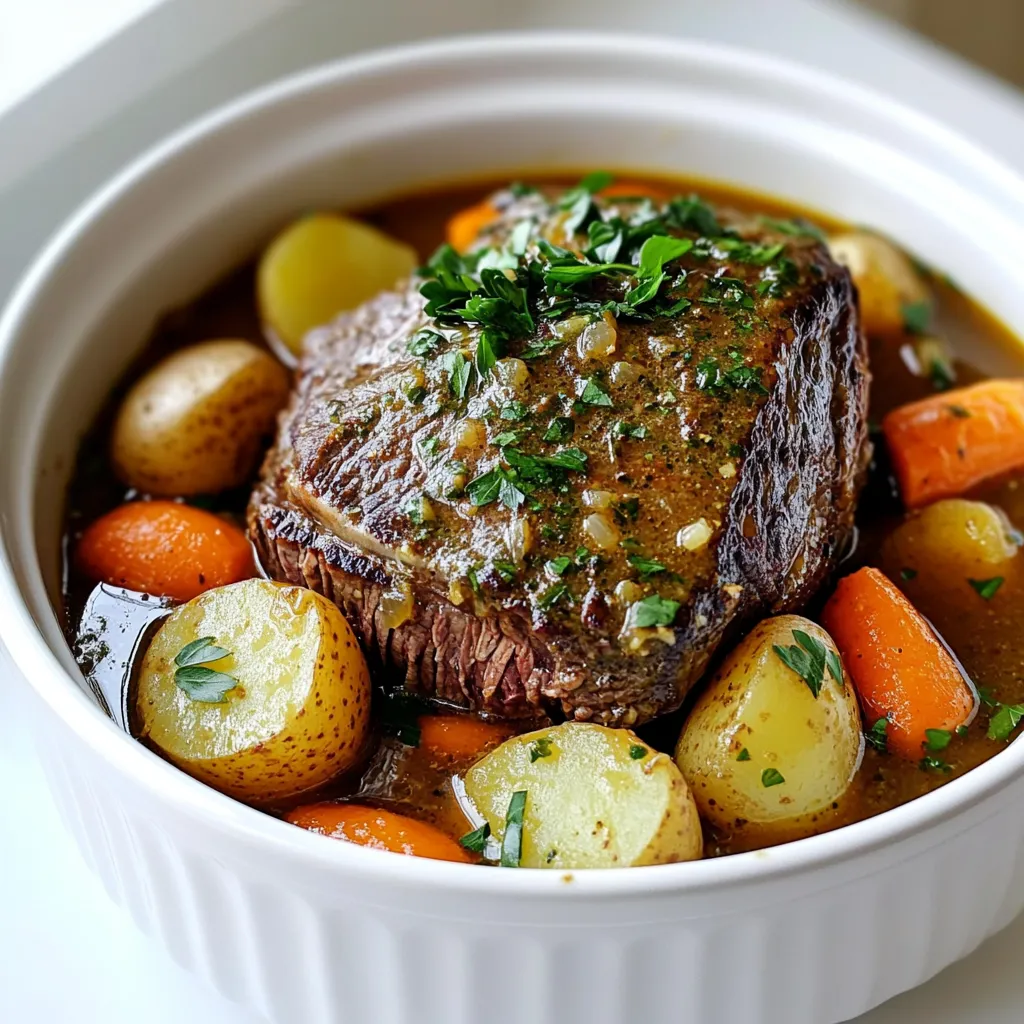 - Presentation Tips: Serve the pot roast in a large bowl with sliced herb garnish and a drizzle of the cooking broth on top. A side of crusty bread would complement the dish beautifully!