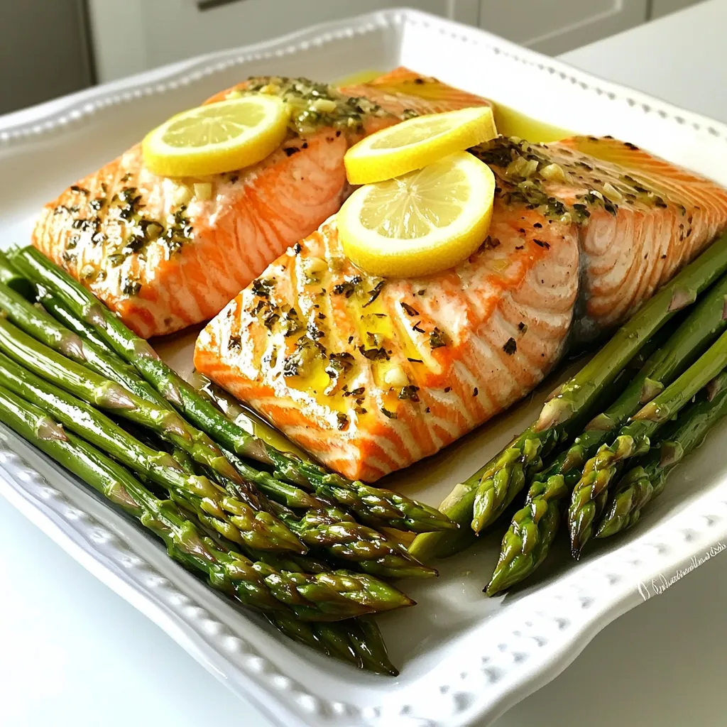 The main ingredients for this dish are simple yet flavorful. Salmon fillets offer rich taste and healthy fats. Asparagus brings a nice crunch and earthy flavor. Garlic adds depth, while olive oil helps blend all the flavors together.