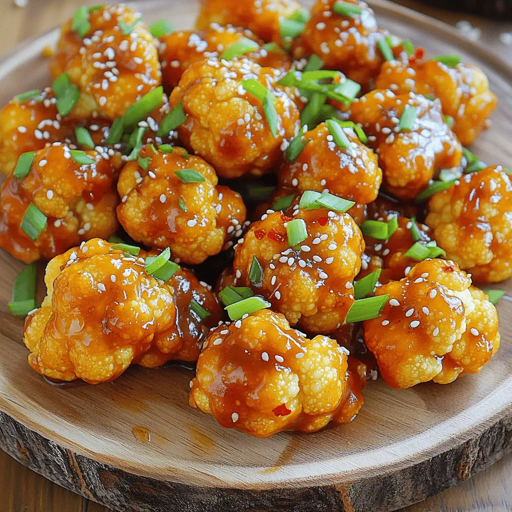 In a large bowl, add the fried cauliflower bites. Pour the prepared sauce over them. Gently toss to coat each bite. This step ensures each floret is covered in sauce. Finally, transfer the General Tso’s cauliflower to a serving plate. Garnish with chopped green onions and sesame seeds for that perfect finish.