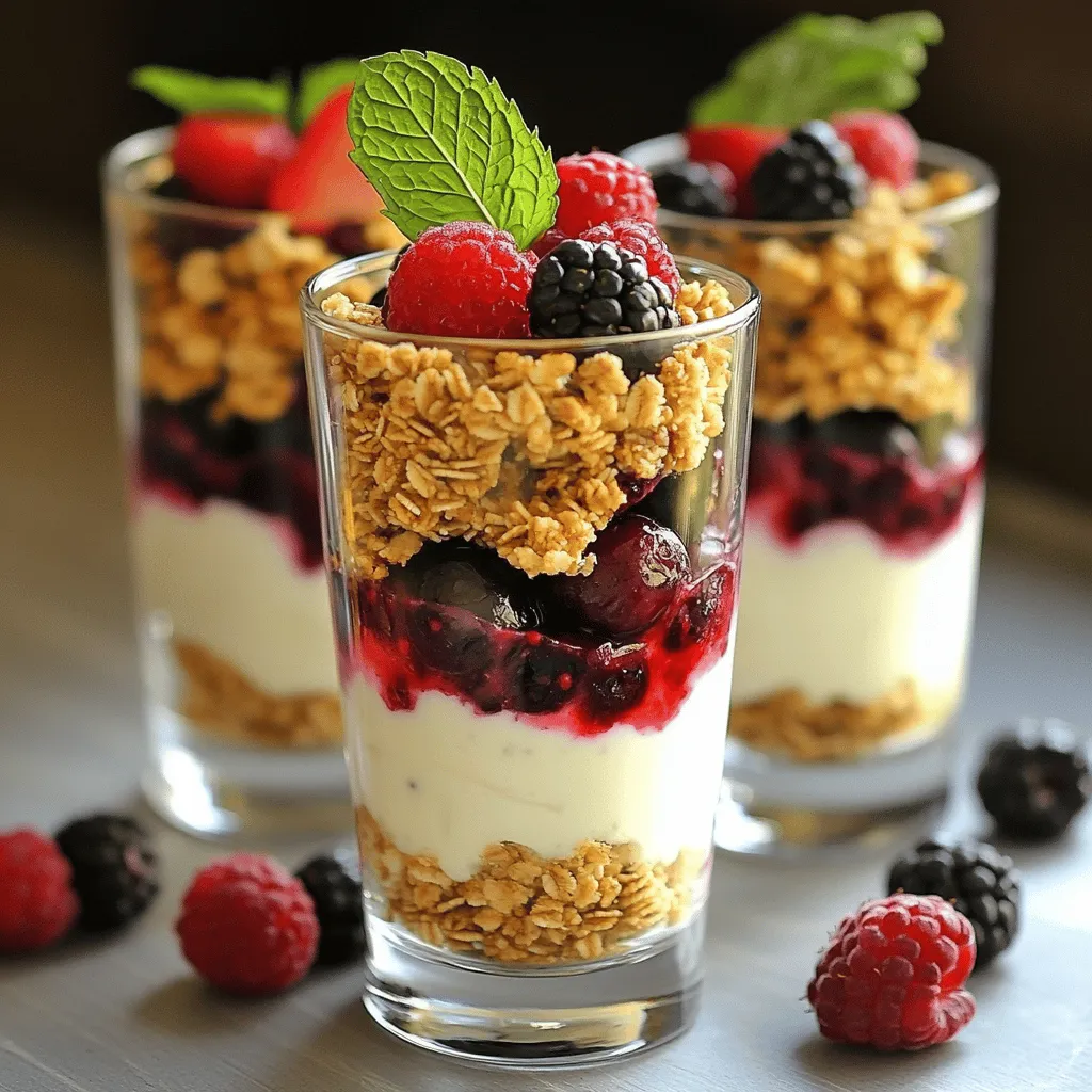 These parfaits are great for breakfast or dessert. Serve them in clear glasses to show off the layers. You can also add a drizzle of honey on top for extra sweetness. If you want a crunch, sprinkle more granola right before serving. For a refreshing twist, you can add a squeeze of lemon over the berries.