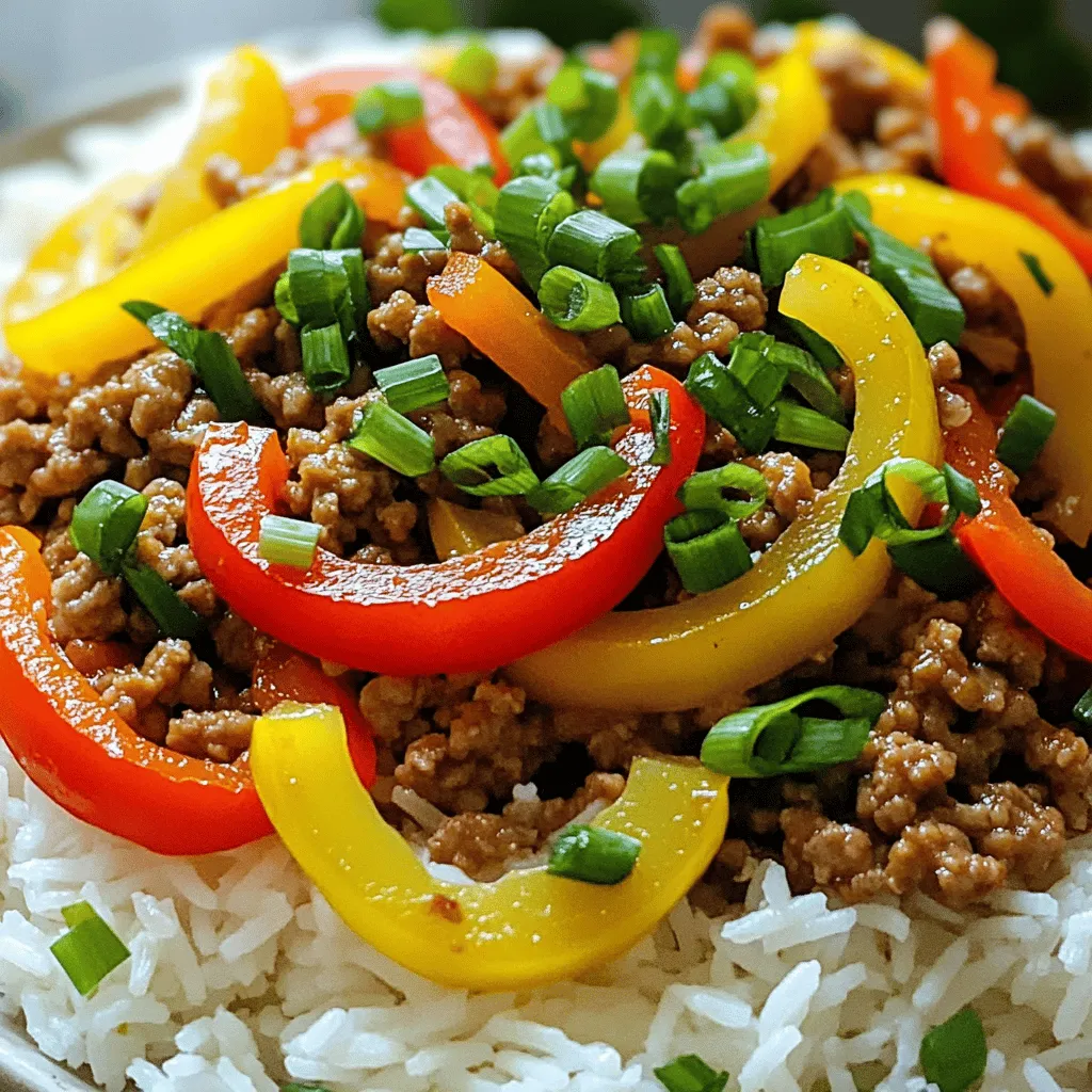 For ingredient substitutions, you can use ground chicken if you like. You can also swap bell peppers with other veggies like broccoli or snap peas. If you need a gluten-free version, use tamari instead of soy sauce.