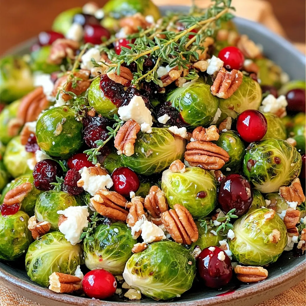 When plating, use a large, white plate to make the colors pop. Place the Brussels sprouts in the center and sprinkle extra cranberries on top. Adding fresh thyme leaves gives a lovely touch. This makes the dish look as good as it tastes!