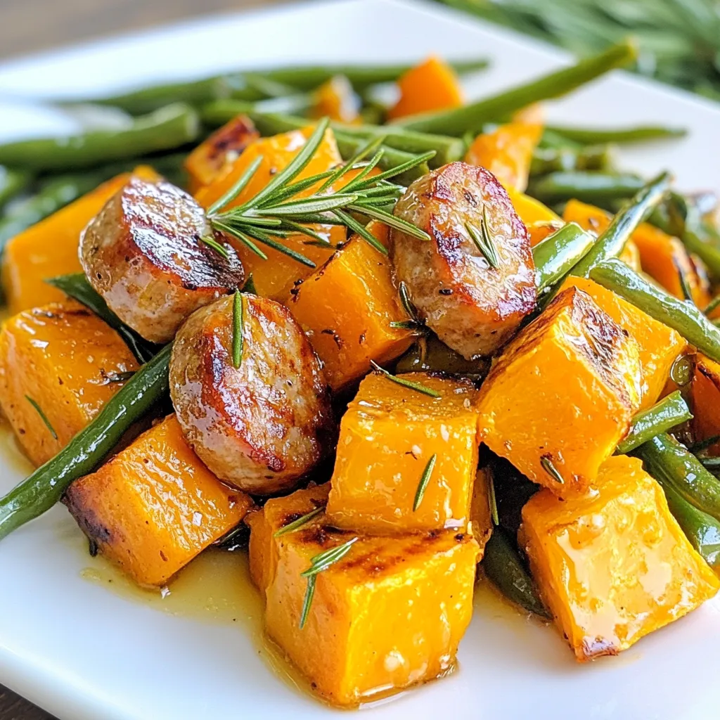 To make Honey Garlic Sausage Sweet Potatoes, you will need: - 4 medium sweet potatoes, diced - 1 pound chicken or turkey sausage, sliced - 3 tablespoons honey - 4 cloves garlic, minced - 1 tablespoon olive oil - 1 teaspoon smoked paprika - ½ teaspoon salt - ½ teaspoon black pepper - 1 tablespoon fresh rosemary, chopped (or 1 teaspoon dried) - 1 cup green beans, trimmed These ingredients create a dish that is sweet, savory, and packed with flavor. Sweet potatoes give a nice texture, while sausage adds heartiness. You can modify this dish based on what you have. Here are some ideas: - Sweet Potatoes: Use butternut squash for a different taste. - Sausage: Try pork or vegetarian sausage if you prefer. - Honey: Maple syrup works well if you want a different sweet flavor. - Garlic: Use garlic powder if fresh garlic is not handy. - Rosemary: Thyme or sage can replace rosemary for a unique twist. These swaps keep the dish tasty while allowing for flexibility. Each serving of Honey Garlic Sausage Sweet Potatoes offers: - Calories: 380 - Protein: 22g - Carbohydrates: 50g - Fat: 12g - Fiber: 7g - Sugar: 10g This meal is balanced and provides a good mix of nutrients. It is filling and suitable for a hearty dinner. {{ingredient_image_1}} Start by prepping your sweet potatoes. Use four medium sweet potatoes and dice them into even cubes. This helps them cook evenly. Next, take a large bowl. Add the diced sweet potatoes to the bowl. Drizzle in one tablespoon of olive oil. Sprinkle one teaspoon of smoked paprika, half a teaspoon of salt, and half a teaspoon of black pepper. Mix everything well, ensuring all the sweet potatoes get coated. Preheat your oven to 400°F (200°C). Once the oven is hot, spread the sweet potatoes on a baking sheet. Make sure they are in a single layer for even roasting. Roast them for 20 minutes, letting them get tender and slightly golden. While the sweet potatoes roast, take a large skillet. Heat it over medium heat. Add one pound of sliced chicken or turkey sausage. Cook it for about 5 to 7 minutes until it’s browned and heated through. After that, stir in four minced garlic cloves. Cook for one more minute until the garlic smells great. Then, add three tablespoons of honey and one tablespoon of chopped fresh rosemary. Mix it all together and heat through. After 20 minutes, pull the sweet potatoes from the oven. Add one cup of trimmed green beans to the baking sheet. Pour the sausage and honey garlic mixture over everything. Toss gently to coat the sweet potatoes and green beans evenly. Return the baking sheet to the oven and roast for another 15 to 20 minutes. You want the green beans tender and the sweet potatoes golden. For the best results, cut the sweet potatoes into uniform pieces. This ensures they cook at the same rate. Keep an eye on the roasting time. Ovens can vary, so check for doneness. If things look too dark, take them out early. You can also add more herbs if you like. Fresh herbs can boost flavor and make the dish pop. When picking sweet potatoes, look for firm, smooth skin. Avoid any with soft spots or blemishes. Choose medium-sized sweet potatoes for even cooking. For sausage, I prefer chicken or turkey for a lighter option. Check the label for quality ingredients and minimal additives. Fresh sausage adds bold flavor, while pre-cooked types save time. To save time, wash and peel sweet potatoes in advance. You can dice them and store in the fridge for up to a day. Slice the sausage while waiting for the oven to preheat. Pre-chop garlic and herbs, too. This way, everything is ready when you start cooking, making the process quick and easy. For added flavor, use fresh herbs like rosemary. They really boost the dish's taste. Try adding a splash of lemon juice just before serving. This brightens the overall flavor. To enhance texture, ensure even roasting. Spread sweet potatoes in a single layer on the baking sheet. This helps them get crispy and golden! Pro Tips Choose Your Sausage Wisely: Opt for a high-quality chicken or turkey sausage for the best flavor and texture. Perfectly Roasted Sweet Potatoes: Make sure to cut the sweet potatoes into uniform pieces to ensure even cooking. Fresh Herbs Make a Difference: Use fresh rosemary if possible, as it adds a vibrant flavor compared to dried herbs. Customize Your Veggies: Feel free to swap in other seasonal vegetables, like bell peppers or zucchini, for added variety. {{image_2}} You can easily adapt this dish for different diets. For a vegan version, use plant-based sausage made from soy or pea protein. Replace honey with maple syrup or agave nectar for sweetness. To make it gluten-free, ensure the sausage is labeled gluten-free. This allows everyone to enjoy the meal. Feel free to swap ingredients based on what you have. Instead of sweet potatoes, use butternut squash or carrots for a twist. If you want more veggies, add bell peppers, zucchini, or broccoli. For the sausage, try pork or beef sausage if you prefer. You can even use beans for added protein. This dish pairs well with many sides. A fresh salad adds a crisp contrast. You might also enjoy serving it with rice or quinoa for extra heartiness. Garlic bread or a light pasta dish can round out the meal nicely. Each option enhances the sweet and savory flavors of the main dish. After you enjoy your Honey Garlic Sausage Sweet Potatoes, store leftovers right away. Let the dish cool to room temperature. Transfer it into an airtight container. This keeps moisture in and prevents smells from mixing. You can store this meal in the fridge for up to three days. When you're ready to eat again, reheating is key. The oven works best for flavor. Preheat your oven to 350°F (175°C). Spread the leftovers on a baking sheet. Heat for about 15 minutes or until warm. This method keeps the sweet potatoes crispy. If you're in a hurry, use a microwave. Place on a microwave-safe plate. Cover it with a damp paper towel. Heat in short bursts, checking every 30 seconds. You ca