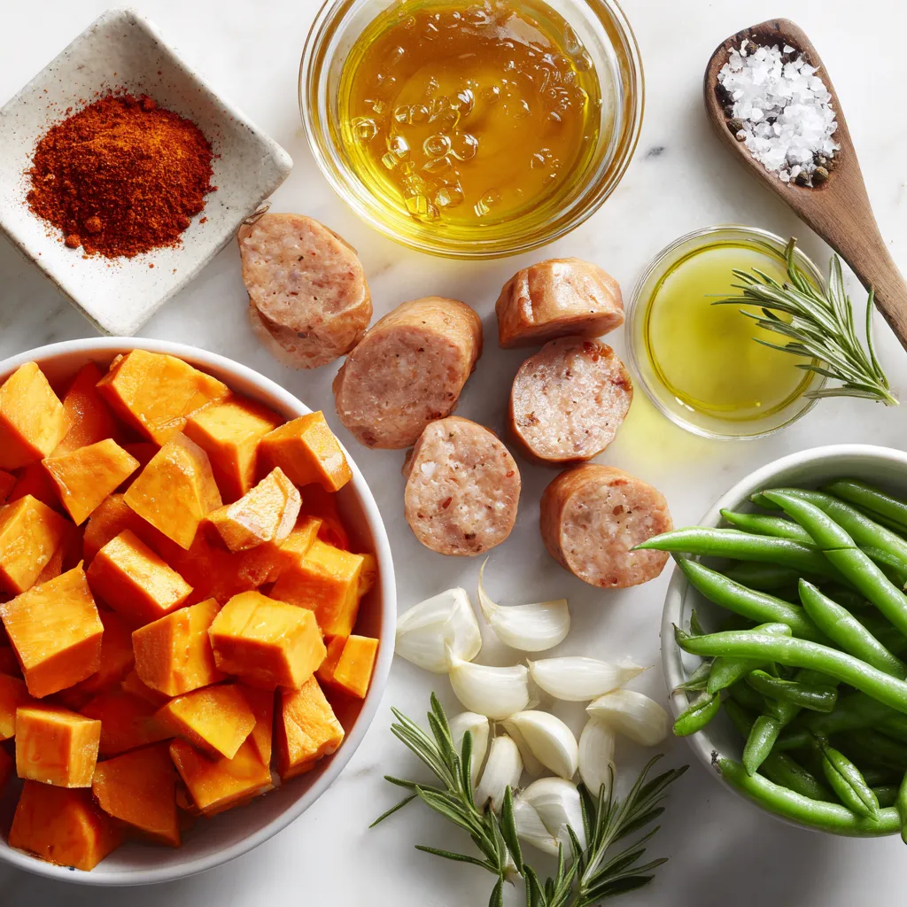 Complete ingredient list for Honey Garlic Sausage Sweet Potatoes