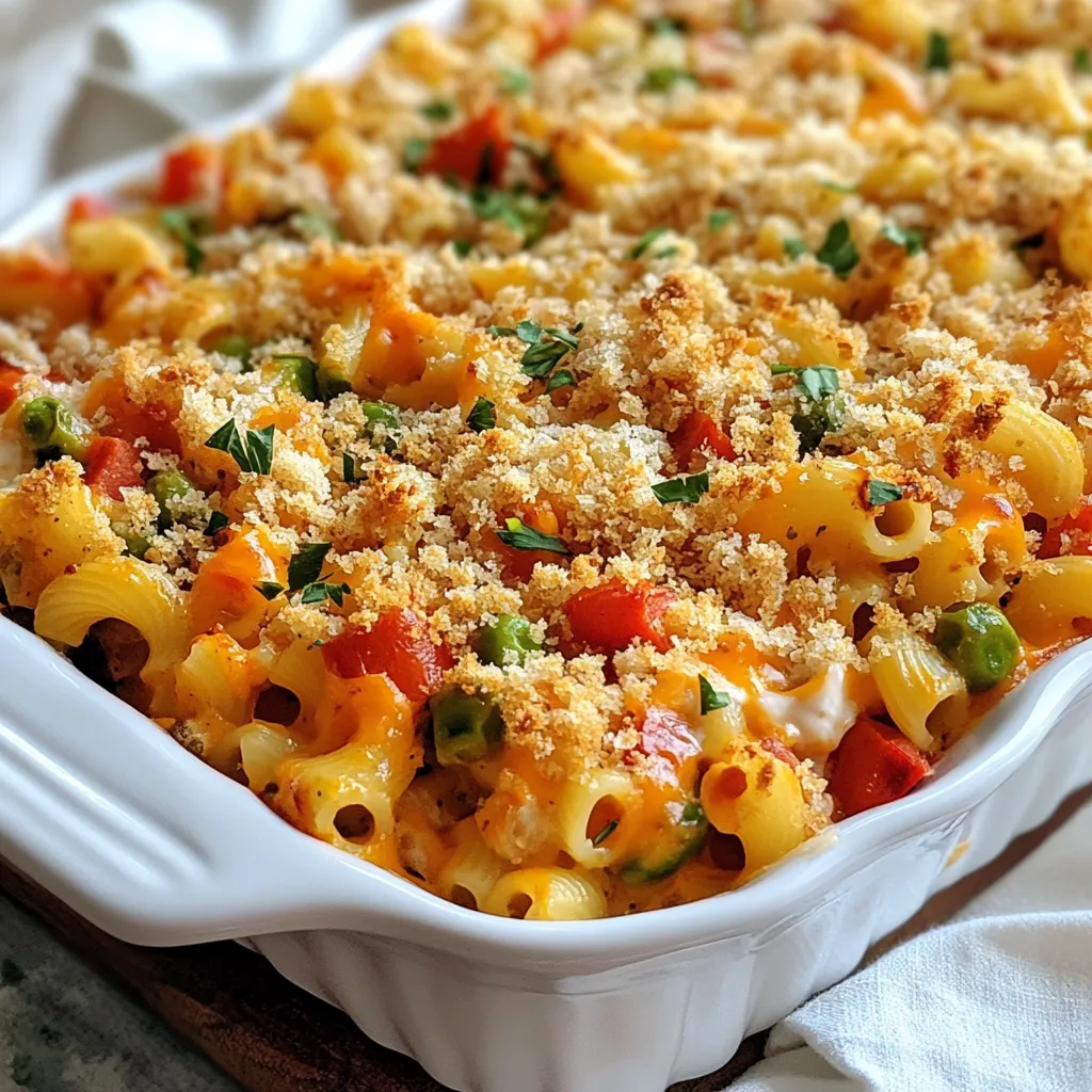 Each of these ingredients plays a key role. The cooked macaroni serves as the base, giving you a hearty feel. Diced tomatoes add a zesty kick, while cheddar cheese makes it creamy and rich. Shredded chicken adds protein, making this dish filling. The mixed vegetables bring color and nutrients. Sour cream ties everything together, creating a smooth texture. Spices like garlic powder, onion powder, and paprika elevate the flavor. Finally, breadcrumbs add a crunchy topping, making every bite satisfying.