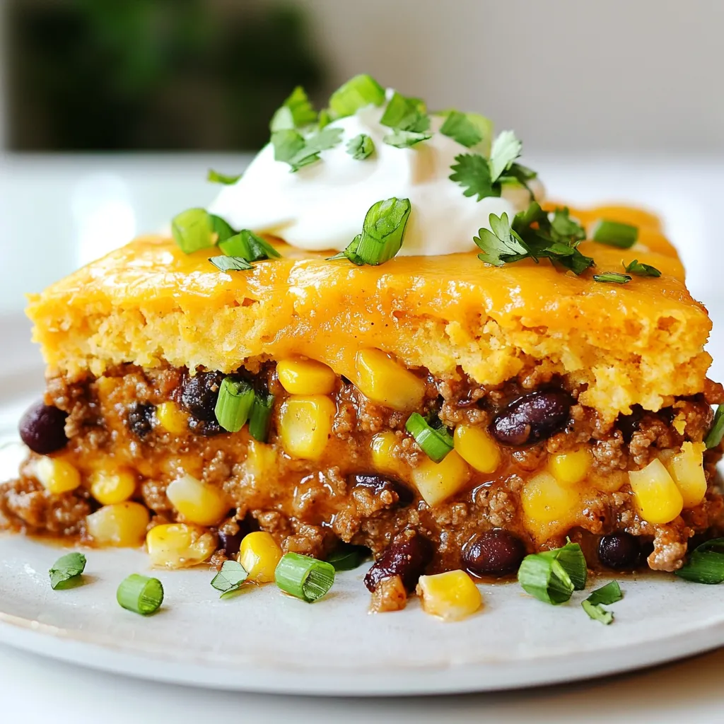 A delicious and easy-to-make cornbread taco bake that combines savory ground meat, beans, and cheese.