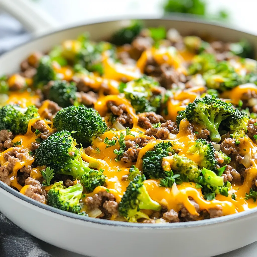 A delicious low-carb skillet meal featuring ground beef and broccoli, perfect for a keto diet.