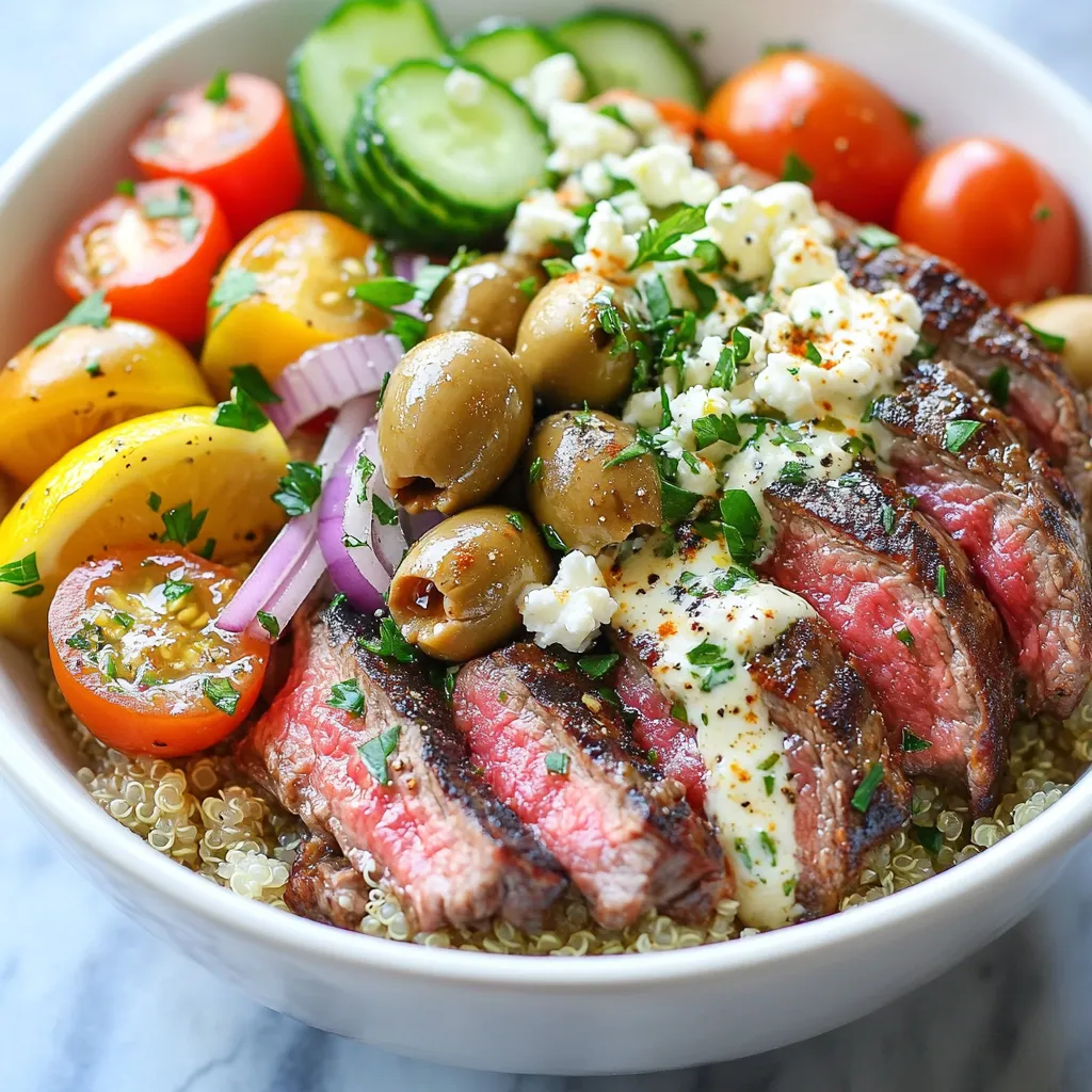 To keep your Mediterranean steak power bowls fresh, store leftovers in airtight containers. Refrigerate them right away to avoid spoilage. The cooked steak stays good for about 3 to 4 days. Quinoa can last up to a week when stored properly. Fresh veggies, like tomatoes and cucumbers, are best used within 2 days.
