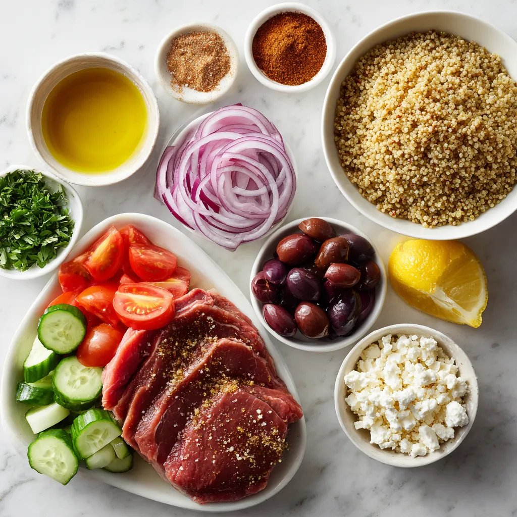 For easy meal prep, marinate the steak the night before. Cook a large batch of quinoa to use throughout the week. Chop veggies and store them in separate containers to keep them fresh. Layer everything in bowls right before serving for the best look and taste.