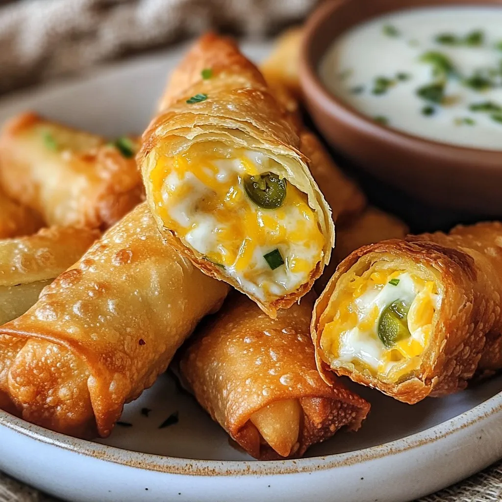 Ranch dressing makes a perfect dip for these egg rolls. It cools down the heat from the jalapeños and adds a creamy touch. You can also play with cheese types. Try pepper jack for an extra kick or mozzarella for a milder taste. Each variation allows you to customize the flavor to your liking.