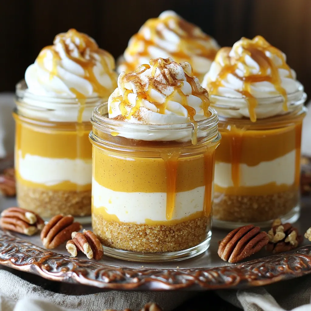 For a nice presentation, use clear cups or jars. This shows off the layers of your cheesecake. Add a drizzle of caramel sauce on top for extra flair. You can also sprinkle some cinnamon or add pecans for crunch. Place the cups on a decorative platter. This makes your dessert look even more inviting. Enjoy sharing these treats with friends and family!