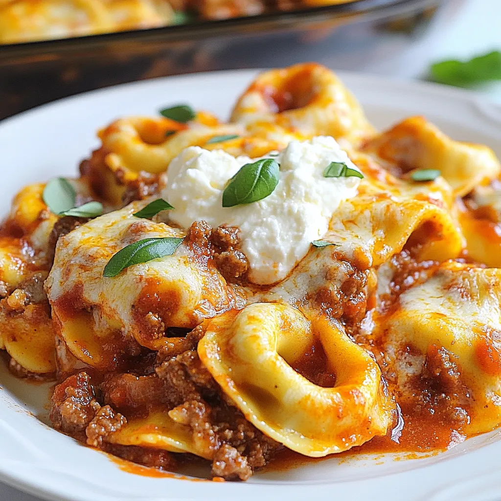 For the One-Pan Beefy Tortellini Bake, you will need: - 1 lb ground beef - 1 medium onion, chopped - 2 cloves garlic, minced - 2 cups marinara sauce - 1 cup beef broth - 12 oz cheese tortellini (fresh or frozen) - 1 cup shredded mozzarella cheese - 1 cup ricotta cheese - 1 teaspoon Italian seasoning - Salt and pepper to taste - Fresh basil, for garnish Using fresh tortellini makes the dish light and tender. Fresh pasta cooks quickly and absorbs flavors better. On the other hand, frozen tortellini offers convenience and still tastes great. Both options work well in this recipe. If you choose frozen, just add a minute or two to the cooking time. If you want a change, try using ground turkey or chicken instead of beef. These options are leaner and still very tasty. You can also use plant-based ground meat for a vegetarian twist. Each substitute will give a different flavor but will still work well in this dish. Remember to adjust the cooking time if needed. {{ingredient_image_1}} Start by gathering all your ingredients. You will need: - 1 lb ground beef - 1 medium onion, chopped - 2 cloves garlic, minced - 2 cups marinara sauce - 1 cup beef broth - 12 oz cheese tortellini (fresh or frozen) - 1 cup shredded mozzarella cheese - 1 cup ricotta cheese - 1 teaspoon Italian seasoning - Salt and pepper to taste - Fresh basil for garnish Make sure the onion is finely chopped and the garlic is minced. This helps them cook evenly. If using frozen tortellini, set it out to thaw a bit. This will help with cooking later. Heat a large oven-safe skillet over medium heat. Add the ground beef to the skillet. Cook until it turns brown. Drain any extra fat. This step keeps the dish from being greasy. Next, add the chopped onion and minced garlic. Stir them in and cook for about 3-4 minutes. You want the onion to become soft and clear. This brings out the sweet flavor of the onion and the aroma of garlic. Now, pour in the marinara sauce and beef broth. Mix it all together and bring it to a simmer. This step makes the sauce rich and tasty. Once the sauce is simmering, add the cheese tortellini. Gently stir to coat the tortellini with the sauce. In a separate bowl, mix ricotta cheese with Italian seasoning, salt, and pepper. Drop spoonfuls of this mixture over the tortellini. This adds creaminess to the bake. Lastly, sprinkle the shredded mozzarella cheese evenly over the top. Cover the skillet with a lid or aluminum foil. Bake in the preheated oven at 375°F (190°C) for 20 minutes. After that, remove the cover and bake for another 10-15 minutes. The cheese should be bubbling and golden. Let it sit for a few minutes before you serve it. Garnish with fresh basil for a burst of flavor. Enjoy your delicious One-Pan Beefy Tortellini Bake! To get that gooey, dreamy cheese melt, follow these steps. First, use fresh mozzarella for the best taste. Shred the cheese yourself for a better melt than pre-shredded cheese. When you sprinkle it on top, spread it evenly. Cover the dish while baking helps keep the moisture in. Once the time is up, remove the cover and bake until golden. This creates a crispy top and a soft, melty layer underneath. You can easily prepare this dish ahead of time. Cook the beef and veggies as directed. Then, layer everything in your skillet, but do not bake it yet. Cover the skillet and store it in the fridge for up to 24 hours. When you're ready to eat, just pop it in the oven. You may need to add a few extra minutes to the baking time since it's cold. This dish pairs well with several sides. A simple green salad adds freshness and crunch. Garlic bread is a classic choice that complements the flavors. You can also serve steamed broccoli or green beans to add nutrition. For a fun twist, try a side of roasted vegetables. Each side brings something special to the table, making your meal even better. Pro Tips Use Fresh Tortellini: Fresh tortellini will give your dish a delightful texture and flavor. If using frozen, ensure they are fully cooked before adding to the sauce. Season Generously: Don’t forget to taste and adjust the seasoning as you go. A pinch of red pepper flakes can add a nice kick! Let It Rest: Allow the dish to sit for a few minutes after baking. This helps the flavors meld together and makes it easier to serve. Add Veggies: For extra nutrition, consider adding spinach or bell peppers to the skillet when sautéing the onion and garlic. {{image_2}} You can easily swap the ground beef for turkey or chicken. Both options offer a lighter taste. Ground turkey is lean and great if you want fewer calories. Ground chicken has a mild flavor that pairs well with cheese and sauce. Just brown the turkey or chicken in the skillet first, just as you would with beef. The cooking times remain the same, making it a simple swap. If you want a vegetarian dish, use meat substitutes like lentils or chickpeas. They add protein and texture. Cook them the same way you would prepare the beef. You can also try plant-based ground beef. These options keep the dish filling while being meat-free. Just ensure to adjust the salt, as some meat substitutes are saltier. Adding veggies boosts nutrition and flavor. You can mix in spinach, bell peppers, or zucchini. Chop them small so they cook quickly. Sauté them with the onion and garlic before adding the sauce. This method adds color and health benefits to your One-Pan Beefy Tortellini Bake. You can also top it with fresh basil for a pop of flavor. To store your One-Pan Beefy Tortellini Bake, let it cool first. Once cooled, put it in an airtight container. This helps keep the flavors fresh. You can store it in the fridge for up to three days. Make sure to cover it well, so it does not dry out. When you want to reheat your dish, the oven works best. Preheat your oven to 350°F (175°C). Place the tortellini bake in an oven-safe dish. Cover it with foil to keep it moist. Heat for about 20 minutes, or until hot. You can also use the microwave. Just heat in short bursts, 