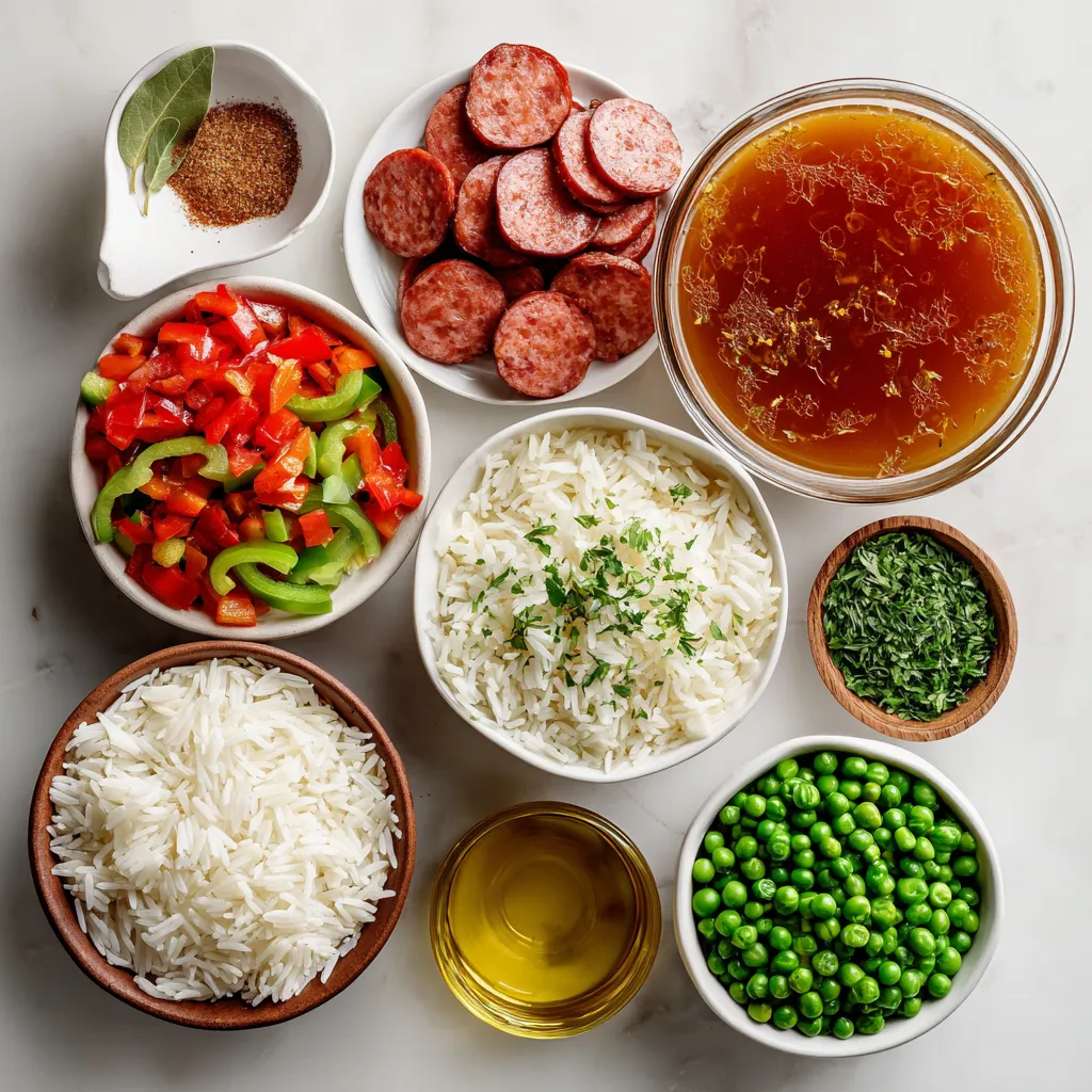 List of Ingredients for One Pan Cajun Sausage and Rice