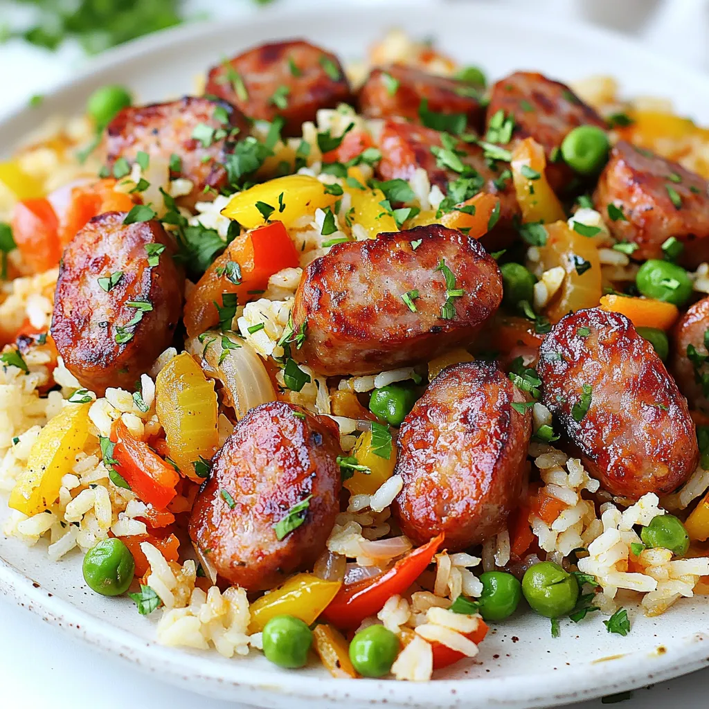 A flavorful one-pan dish featuring Andouille sausage, rice, and a blend of Cajun spices.