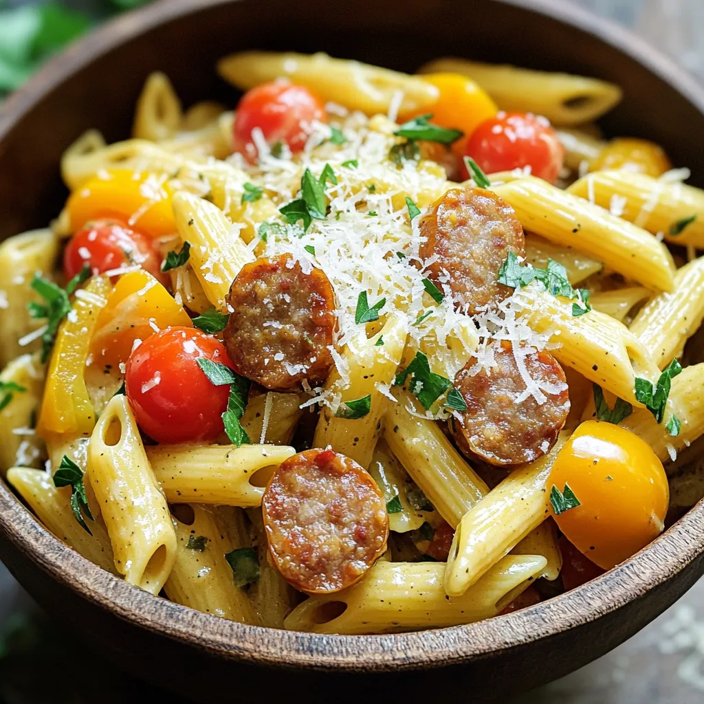 This dish combines rich flavors and textures from simple ingredients. You learned how to prepare a creamy pasta with sausage, colorful veggies, and spices. Remember to cook the pasta just right and adjust the spice level to fit your taste. You can also swap ingredients for a personal touch or try new cooking methods. Store leftovers properly to enjoy later. With these tips, you can create a meal everyone will love. Enjoy your cooking adventure!