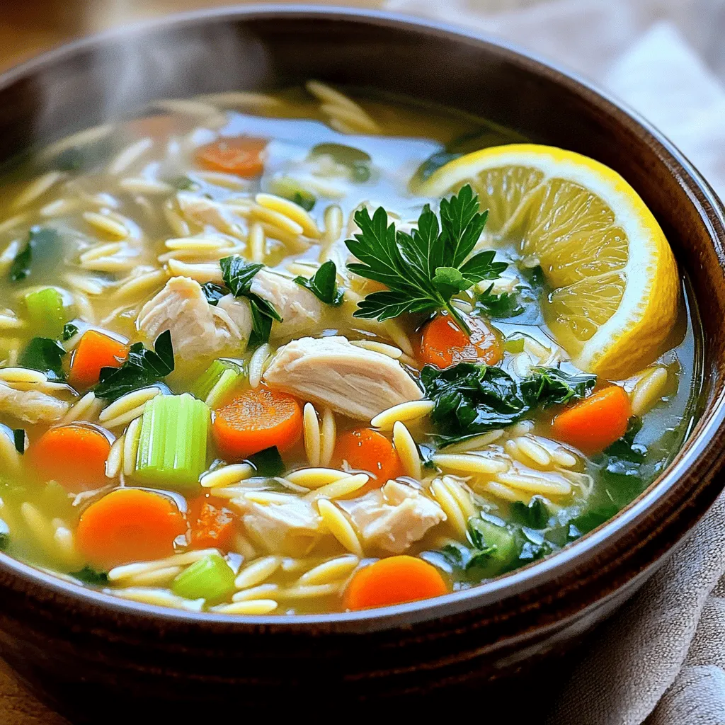 These ingredients create a bright and flavorful soup. The chicken adds protein, while the orzo makes it hearty. Fresh vegetables like onions, carrots, and celery bring great texture and taste.
