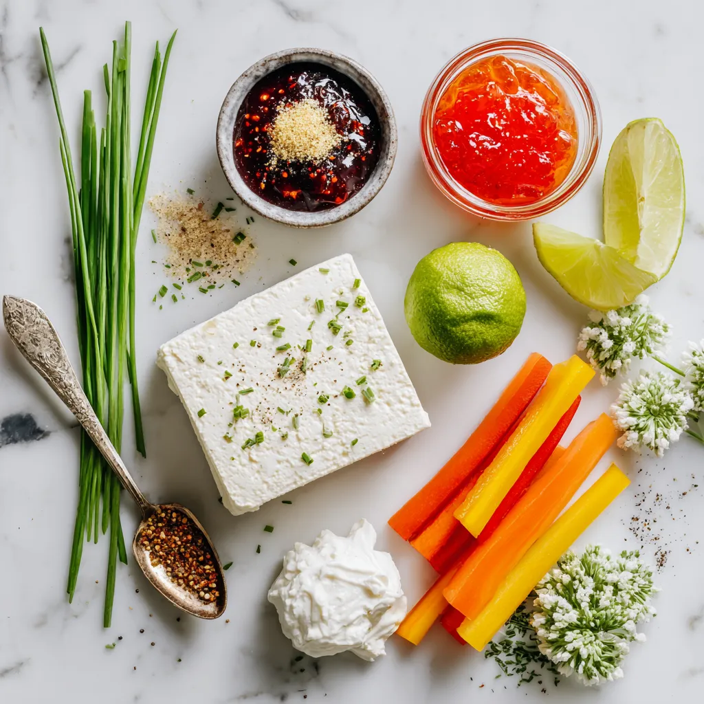 The main ingredients in this dip are simple yet flavorful. The cream cheese gives it a rich base, while the pepper jelly adds a sweet and spicy kick. Sour cream makes it creamy and light.