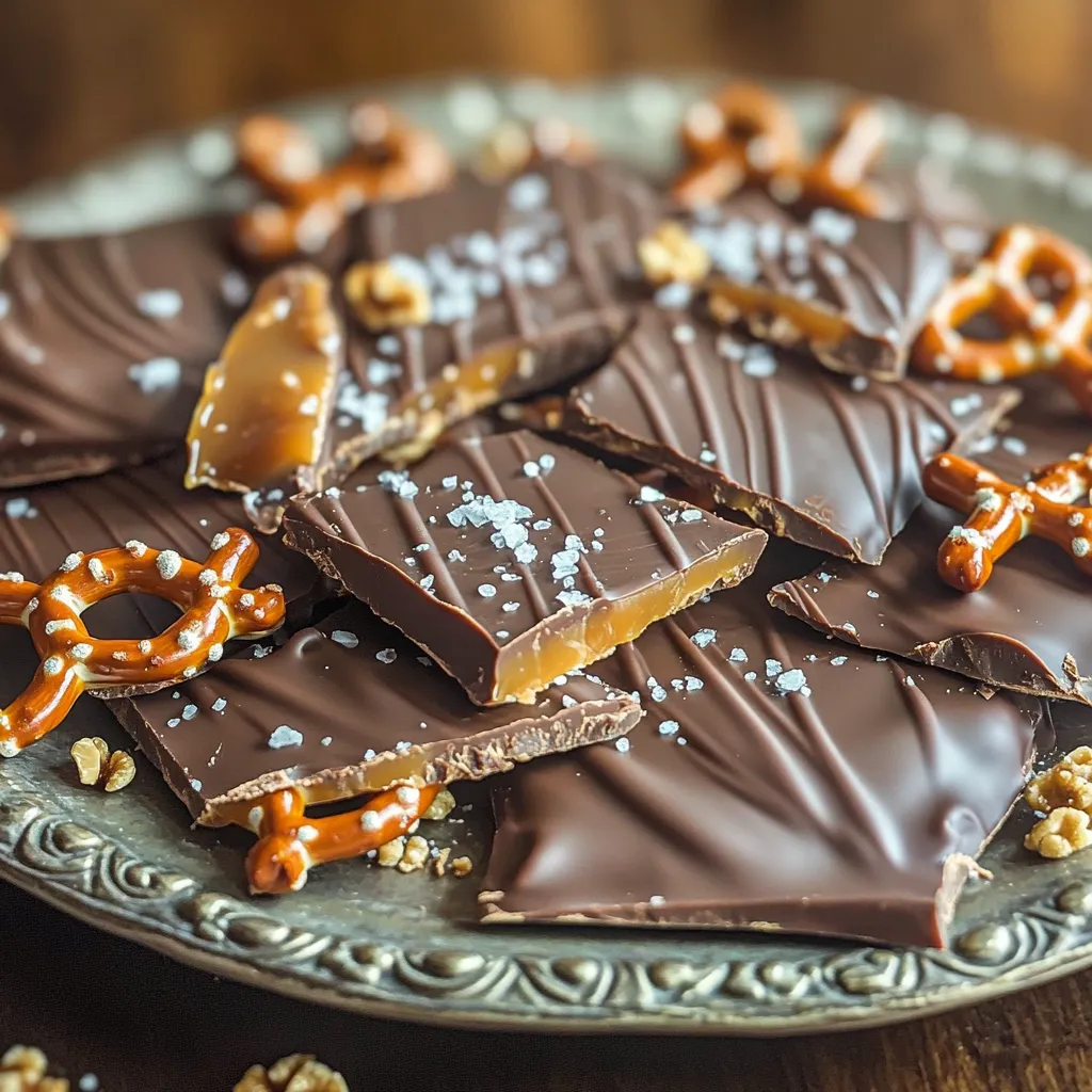 - Presentation Tips: Serve the salted caramel pretzel bark on a decorative platter, garnished with a sprinkle of sea salt and a few whole pretzels for an eye-catching display.