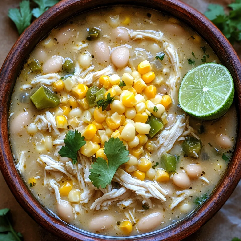 The main ingredients of this dish create a hearty base. Chicken breasts give the chili its protein and flavor. White beans offer creaminess and fiber. Corn adds a sweet crunch and color. Aromatics like onion and garlic bring a fragrant note to the mix. I always dice my onion small for better blending. The garlic should be minced finely to spread its flavor.