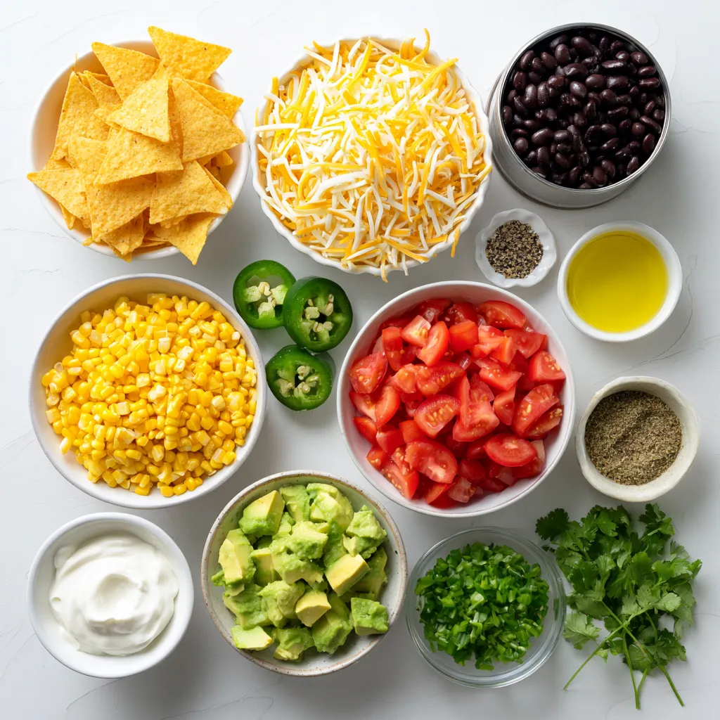 - 1 bag (10-12 oz) tortilla chips - 1 cup shredded cheddar cheese - 1 cup shredded Monterey Jack cheese - 1 can (15 oz) black beans, rinsed and drained - 1 cup corn (fresh, frozen, or canned) - 1 jalapeño, sliced - 1 medium tomato, diced - ½ cup fresh cilantro, chopped - ½ cup sour cream - ½ avocado, diced - 2 tablespoons olive oil - 1 tablespoon taco seasoning - Salt and pepper to taste You can change up your nachos to fit your taste. Here are my favorite options: - Add cooked ground beef or shredded chicken for more protein. - Use different types of cheese like pepper jack or queso fresco. - Swap jalapeños for banana peppers for a milder kick. - Try adding black olives for extra flavor. - Top with pickled onions for a zesty touch. For the best nachos, choose quality ingredients. Here are my top picks: - Tortilla Chips: Look for brands with real corn and no preservatives. - Cheese: Use block cheese and shred it yourself for better melt. - Beans: Go for low-sodium canned black beans for healthier options. - Olive Oil: Choose extra virgin olive oil for rich flavor. - Spices: Fresh taco seasoning packs a punch. Check for low-sodium options. These tips help you create a perfect plate of nachos that are cheesy and crispy! {{ingredient_image_1}} First, set your oven to 400°F (200°C). This step is key for crispy nachos. While the oven heats up, grab a large sheet pan. Spread the tortilla chips evenly across the pan. Make sure to leave some space between the chips. This helps them stay crispy when baking. Now, let’s add flavor! In a bowl, mix the black beans, corn, olive oil, taco seasoning, salt, and pepper. Stir well to coat everything. Spread this tasty mix over the chips. Next, sprinkle the shredded cheddar and Monterey Jack cheese evenly on top. Add jalapeño slices and diced tomatoes to give it a fresh kick. Time to bake! Place the sheet pan in the oven. Bake for 10-12 minutes. Watch closely until the cheese melts and bubbles. This is the moment you want! Once finished, take it out and let it cool for a few minutes. Top with diced avocado and fresh cilantro. Serve warm with sour cream on the side. Enjoy your cheesy, crispy meal! To make your nachos crispy, start with good tortilla chips. Use a sturdy brand that holds up well. Spread the chips evenly on the pan. Avoid stacking them too high. This allows heat to reach all the chips. Bake them at a high temperature, 400°F is best. Keep an eye on them as they cook. You want them golden, not burnt. When the cheese melts, it helps hold everything together. Let them cool for a few minutes before serving. This keeps the chips crunchy. For nachos, I love using a mix of cheeses. Cheddar adds a sharp taste. Monterey Jack melts beautifully and brings creaminess. Together, they create a nice balance. You can also add pepper jack for a spicy kick. Try mixing in some queso blanco for a unique flavor. The key is to use shredded cheese. It melts faster and evenly, making every bite cheesy and delightful. Serve your nachos straight from the sheet pan. It looks great and makes for easy sharing. I like to top mine with fresh ingredients for a pop of color. Add diced tomatoes, sliced jalapeños, and chopped cilantro on top. You can also include avocado for creaminess. Serve with a side of sour cream for dipping. For extra flavor, squeeze some lime juice on top. This brightens the dish and adds freshness. Enjoy with your favorite drink for a perfect snack! Pro Tips Use Quality Tortilla Chips: Opt for sturdy tortilla chips that can hold up to the toppings without getting soggy. Customize Your Toppings: Feel free to add other favorite toppings such as diced bell peppers, olives, or even cooked ground meat for extra protein. Broil for Extra Crispiness: For an extra crispy finish, switch to the broiler for the last 1-2 minutes of baking, but keep a close eye to prevent burning. Serve with Variety: Offer a selection of dips like guacamole, salsa, or queso on the side to enhance the nacho experience. {{image_2}} You can make tasty vegetarian nachos using fresh ingredients. Start with your tortilla chips. For toppings, try: - 1 can (15 oz) black beans, rinsed - 1 cup corn, fresh or frozen - 1 medium tomato, diced - ½ cup fresh cilantro, chopped - ½ avocado, diced - ½ cup sour cream Feel free to add more veggies like bell peppers or olives. A sprinkle of taco seasoning gives it a nice kick. Add meat for a hearty twist! Ground beef or chicken works great. For meat toppings, consider: - 1 pound ground beef, cooked - 1 tablespoon taco seasoning Mix the cooked meat with the taco seasoning. Spread it over your chips before adding cheese and other toppings. This gives each bite a savory boost. If you love spice, kick it up a notch! For spicy nachos, use: - 1 jalapeño, sliced - Extra hot sauce - Spicy salsa Layer the jalapeño slices on top of the cheese for that extra heat. You can also drizzle hot sauce over the nachos before serving. These spicy nachos will excite your taste buds. These variations keep your nachos fun and fresh. Enjoy mixing and matching! To store leftover nachos, first, let them cool completely. Then, place them in an airtight container. Keep the container in your fridge. They will stay fresh for up to three days. Avoid stacking the nachos, as this makes them soggy. When reheating nachos, use an oven for the best results. Preheat your oven to 350°F (175°C). Spread the nachos on a baking sheet. Heat them for about 10 minutes. This keeps the chips crispy and the cheese melty. You can also cover the nachos with foil to prevent burning. Do freeze nachos if you want to save them for later. Use a freezer-safe container or wrap them well. However, do not freeze nachos with toppings like sour cream or avocado. These toppings do not freeze well and can change texture. When ready to eat, thaw them overnight in the fridge before reheating. Yes, you can prep the toppings ahead of time. Keep the tortilla chips separate. If you layer everything and bak