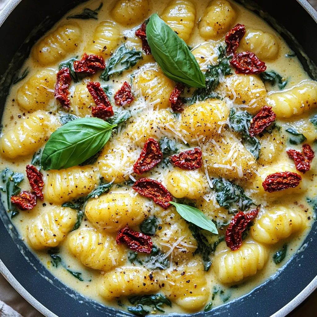 - 1 package (16 oz) potato gnocchi - 1 cup sun-dried tomatoes (packed in oil), drained and chopped - 2 tablespoons olive oil - 3 cloves garlic, minced - 1 cup baby spinach - 1 cup heavy cream - 1 teaspoon dried basil - 1 teaspoon dried oregano - Salt and pepper to taste - ½ cup grated Parmesan cheese - Fresh basil leaves for garnish - Oil from sun-dried tomatoes - Extra grated Parmesan cheese for serving Gathering the right ingredients is key for a great Sun-Dried Tomato Gnocchi Skillet. First, you need potato gnocchi. This soft dumpling forms the base of our dish. You can find it in most stores. Next, sun-dried tomatoes bring a rich, tangy taste. Make sure they are packed in oil for the best flavor. Olive oil is next. It helps sauté the garlic and adds depth. I suggest using oil from the sun-dried tomatoes for even more flavor. Garlic is a must. It gives your dish a warm, inviting aroma. Baby spinach adds color and nutrients. It wilts nicely in the creamy sauce. Heavy cream transforms the dish into a comforting delight. It makes everything rich and creamy. Dried basil and oregano add an Italian touch. They marry well with the other flavors. Don’t forget salt and pepper! They enhance all the tastes. Finally, Parmesan cheese is your finishing touch. It adds a savory kick. If you want to take it up a notch, consider extra oil and cheese. They make great toppings. With these ingredients, you're ready to create a flavorful meal that warms the heart. - Heat olive oil in the skillet. Use oil from the sun-dried tomatoes for more flavor. - Sauté garlic until fragrant. This takes about one minute. Don’t let it burn! - Stir in sun-dried tomatoes and cook. Let them mingle for 1-2 minutes. This helps their flavor shine. - Add gnocchi and brown lightly. Stir gently for about 2-3 minutes until golden. - Pour in heavy cream and add seasonings. Sprinkle in dried basil and oregano, along with salt and pepper. - Simmer and incorporate spinach. Reduce heat and stir until the spinach wilts. - Stir in Parmesan cheese. This makes the dish creamy and rich. - Adjust seasoning and serve. Taste and add more salt or pepper if needed. Enjoy your beautiful creation! - Avoid overcooking the gnocchi. When you cook gnocchi, follow the package instructions. Gnocchi should float to the top when done. Remove it quickly to keep it light and airy. - Use oil from sun-dried tomatoes for added flavor. This oil is packed with taste. Drizzle it in your skillet to boost the dish's richness. - Presentation tips for serving. Serve the gnocchi in shallow bowls. Top it with extra Parmesan cheese and fresh basil. This adds color and makes it look gourmet. - Pairing options with the dish. A crisp salad or garlic bread works great. You can also serve it with a light white wine for a perfect meal. - Avoid burning garlic. Sauté garlic for just a minute. If it turns brown, it will taste bitter. Keep an eye on it while cooking. - Ensure proper seasoning balance. Taste your dish before serving. Adjust salt and pepper as needed. This small step makes a big difference in flavor. {{image_2}} You can easily change up the dish by adding protein. Diced chicken or shrimp works great here. Just add them after the garlic and cook until done. This will give your skillet even more flavor. If you want to switch up the pasta, try using another kind. You can use fettuccine or even whole wheat pasta. These options will give you a different texture while keeping the dish tasty. To add some heat, sprinkle in chili flakes. This gives the dish a nice kick without overpowering it. You can start with a pinch and adjust to your taste. Using fresh herbs can also boost the dish's flavor. Try adding parsley or thyme. They bring a fresh taste that pairs well with the sun-dried tomatoes. For those who need gluten-free options, look for gluten-free gnocchi. Many brands offer this, and it tastes just as good. If you want a dairy-free version, swap the heavy cream with coconut cream or almond milk. These options keep the dish creamy while making it dairy-free. To keep your leftover gnocchi skillet fresh, store it in the fridge. Use an airtight container. Make sure it cools down to room temperature first. It will last about 3 to 4 days. When ready to eat, check for any off smells before reheating. For longer storage, freezing is a great option. First, let the dish cool completely. Then, place it in a freezer-safe container. You can also use freezer bags. Remove as much air as possible before sealing. It will stay good for up to 2 months. Just remember to label the container with the date. When it's time to enjoy your gnocchi again, reheating is easy. One good method is to use the stovetop. Place the skillet over low heat. Add a splash of cream or water to keep it moist. Stir it often until heated through. You can also microwave it in a bowl. Cover it with a lid or a damp paper towel. Heat it in short bursts, stirring in between. This helps avoid uneven heating. Making Sun-Dried Tomato Gnocchi Skillet takes about 25 minutes. You will spend 10 minutes prepping the ingredients. The cooking time is around 15 minutes. This dish cooks quickly, making it great for busy nights. Yes, you can easily make this dish vegetarian. You can use vegetable broth instead of chicken broth if you want. You can also add mushrooms or zucchini for extra flavor. These options keep it hearty and delicious. Sun-Dried Tomato Gnocchi Skillet pairs well with many sides. A simple green salad is a nice touch. Garlic bread also complements the dish well. For drinks, a light white wine or sparkling water works great. This blog post covers how to make a tasty Sun-Dried Tomato Gnocchi Skillet. We explored essential and optional ingredients, simple cooking steps, and helpful tips for the best results. You can customize this dish with your favorite flavors and dietary needs. Remember to avoid common mistakes, like burning garlic. Enjoy this meal fresh or save it for later with the right storage. Now, g