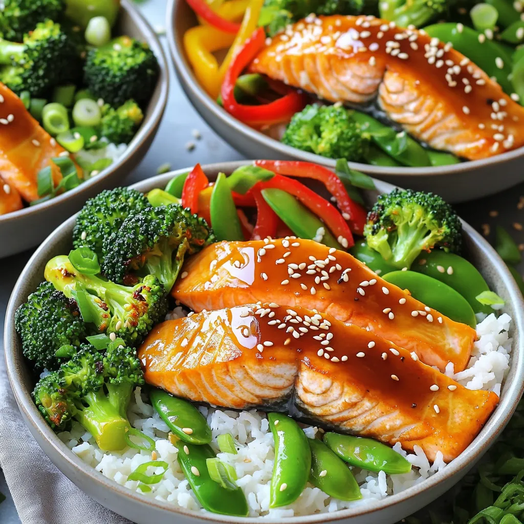 Meal prepping is a smart way to enjoy Teriyaki Salmon Bowls throughout the week. Cook a larger batch of salmon and veggies, then divide them into meal containers. This makes for quick lunches or dinners. Store them in the fridge for up to four days. If you want to keep them longer, freeze the portions. They can last in the freezer for up to three months. Just remember to label the containers with the date.