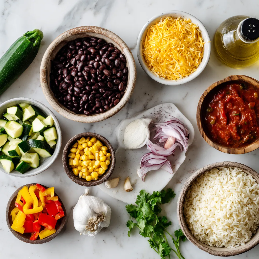 The main ingredients in this casserole create a tasty and filling dish. I love using cooked rice as a base. It adds texture and makes the dish hearty. Black beans are my favorite protein source in this recipe. They are rich in fiber and very good for you. Corn adds sweetness and a lovely pop of color.